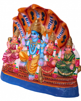 Paper Mache Vishnu Family Statue - 7 Inches Bring the divine energy of the holy Vishnu family into your home with this beautifully handcrafted 7-inch Paper Mache Vishnu Family Statue. This exquisite statue features Lord Vishnu, his consort Goddess Lakshmi, and their divine children, showcasing the unity, grace, and protection offered by this sacred family. Handcrafted by skilled artisans using…
