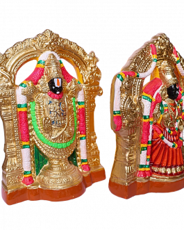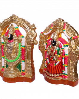Paper Mache Perumal Thaayar Statue - 8 Inches Elevate your spiritual space with the divine presence of Perumal and Thaayar in this beautifully crafted 8-inch Paper Mache statue. Featuring Lord Perumal (Vishnu) and his consort Thaayar (Lakshmi), this statue is a stunning representation of divine love, compassion, and protection. Handcrafted by skilled artisans using premium Paper Mache, the statue captures…