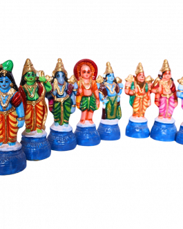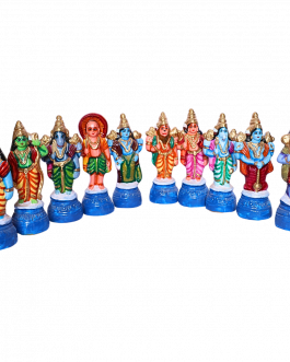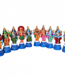 Paper Mache Dhasavatharam Statue - 2.3 Inches Celebrate the divine incarnations of Lord Vishnu with this exquisite Paper Mache Dhasavatharam Statue. Standing at 2.3 inches, this beautifully handcrafted piece showcases the Ten Avatars (Dhasavatharam) of Lord Vishnu, each representing a unique form through which the god incarnated to restore cosmic order. This Paper Mache statue elegantly captures these ten forms—Matsya, Kurma,…