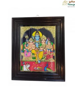 Tanjore Painting of Sivan Family - 18 Inches Bring home the divine essence of the Sivan Family with this exquisite Tanjore Painting, measuring 18 inches. This stunning artwork beautifully portrays Lord Shiva, Goddess Parvati, and their sons, Lord Ganesha and Lord Murugan, capturing the harmony and blessings of this revered family, making it an ideal centerpiece for your prayer space…