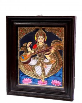 Tanjore Painting of Goddess Saraswati Embrace the divine grace of Goddess Saraswati, the deity of wisdom, music, and arts, with this magnificent Tanjore Painting. Handcrafted by skilled artisans, this 14-inch masterpiece captures the essence of traditional South Indian art, renowned for its intricate detailing and vibrant gold accents. Material: High-quality canvas adorned with 22-carat gold foil work, mounted on a…