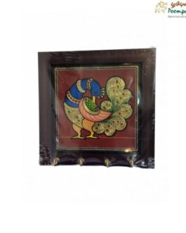 Tanjore Painting Peacock Key Hanger - 7 Inches Add a touch of elegance and tradition to your home with this exquisite Tanjore Painting Peacock Key Hanger, measuring 7 inches. This unique piece beautifully combines functionality with artistry, making it a charming addition to your entryway or any wall space. Material: Crafted from high-quality wood, this key hanger features intricate 22-carat…