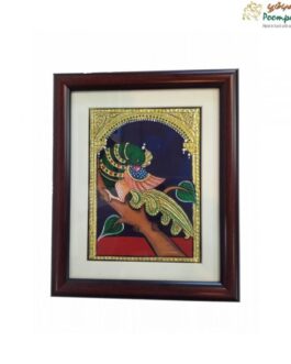 Tanjore Painting – Peacock – 14 Inch This captivating Tanjore painting features a majestic peacock, symbolizing beauty, grace, and prosperity. Crafted in the traditional Tanjore style, this artwork is embellished with 24-carat gold foil, enhancing its elegance and making it a striking addition to any space. Key Features: Size: 14 inches (height) Frame: High-quality wooden frame with protective glass. Material:…