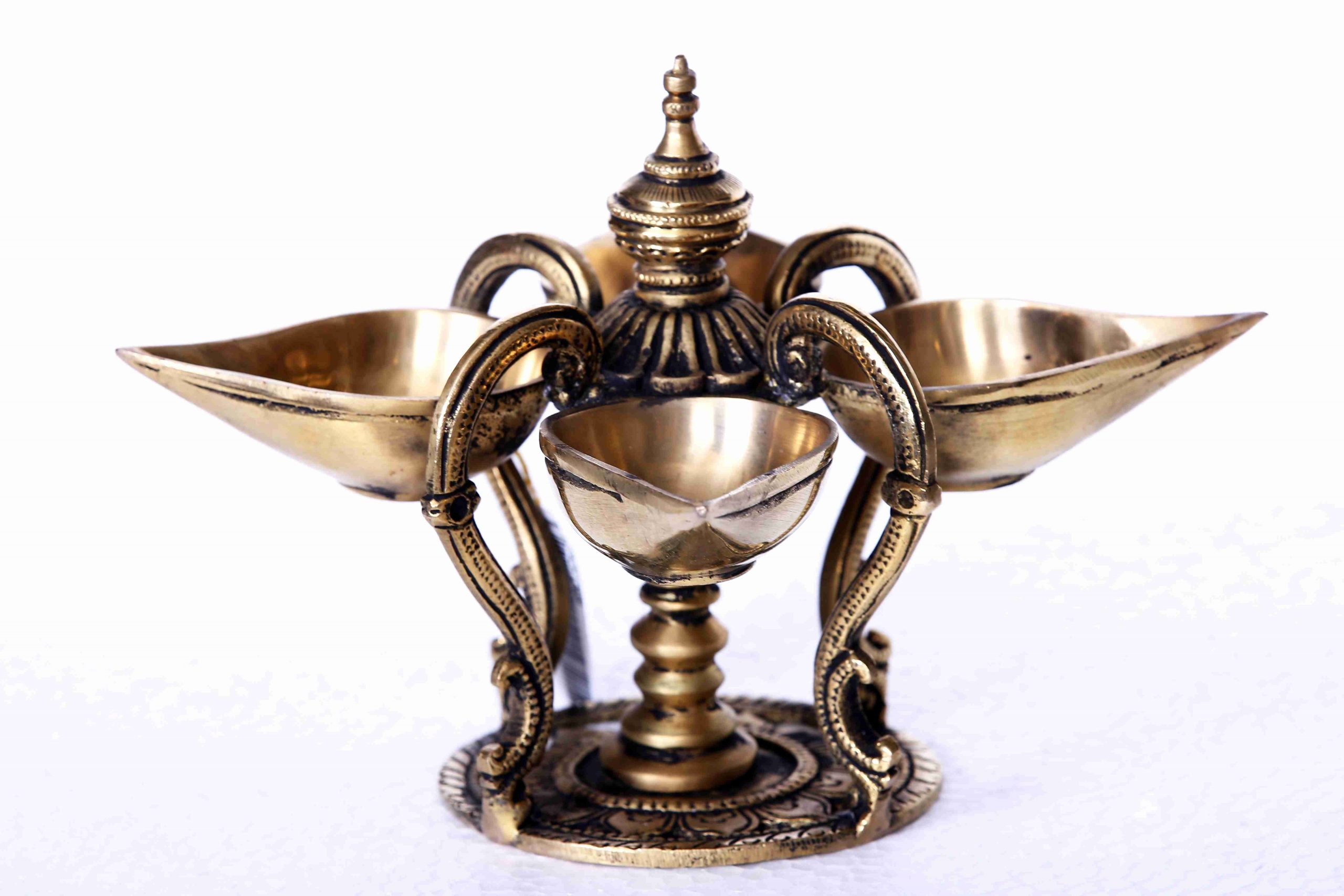 Perfect for pooja rituals, festive decorations, or home decor, this lamp is designed with a sturdy base and a well-proportioned wick holder to ensure steady illumination. Its intricate craftsmanship reflects the rich heritage of Indian artistry, making it a cherished addition to your collection.