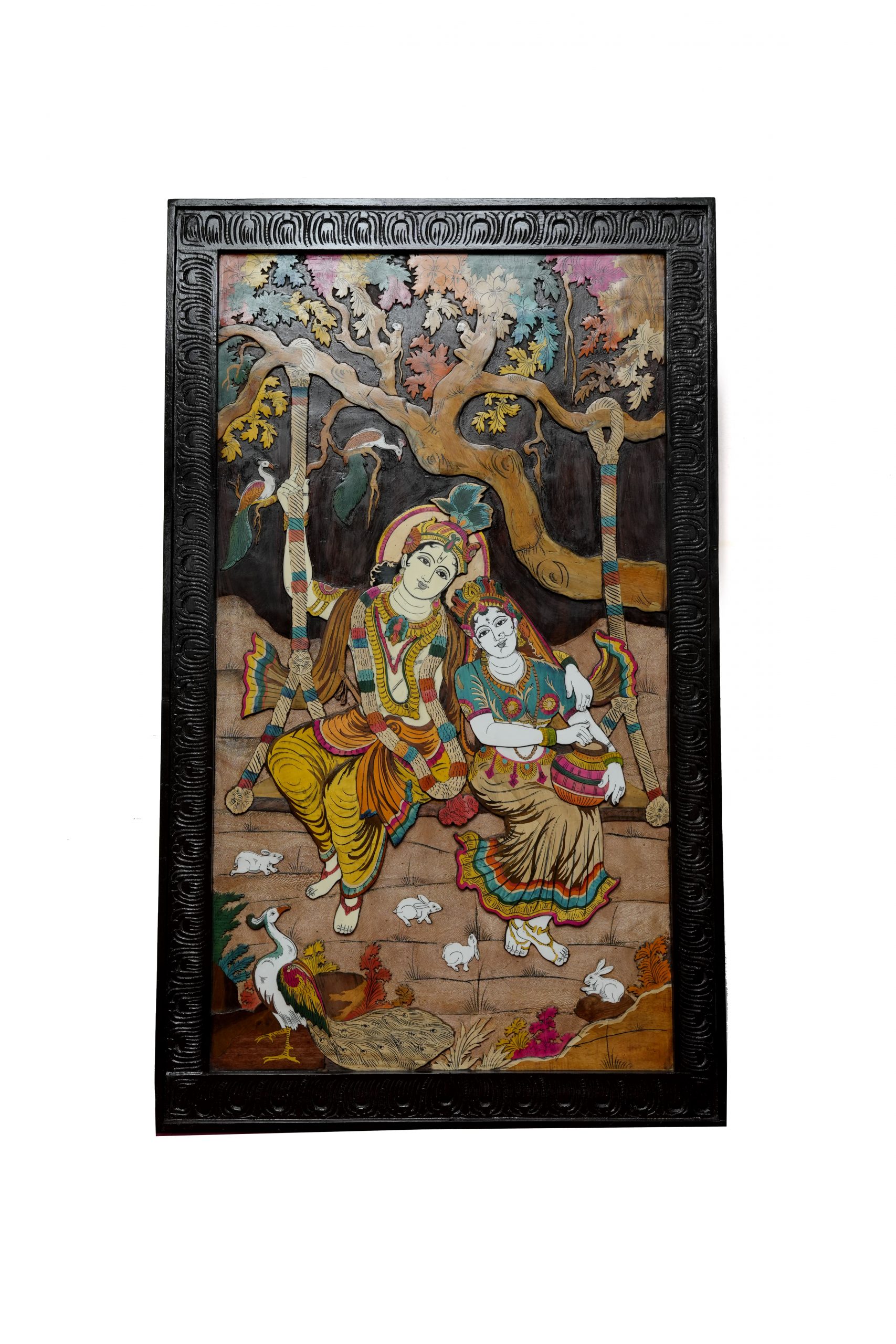 - Divine Representation: The panel showcases Lord Krishna in his serene, divine form, teaching Arjuna on the nature of life and the importance of Dharma (righteous duty).
