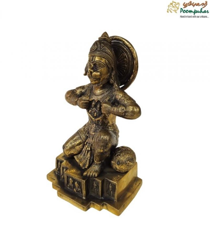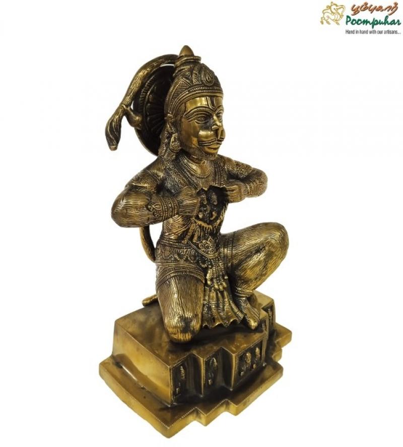 - Divine Anjaneyar Statue: This 9-inch handcrafted statue of Lord Anjaneyar (Hanuman) captures the deity in his traditional form, symbolizing strength, devotion, and protection. The intricate detailing showcases Hanuman in a humble posture with his mace, exuding spiritual power and grace.