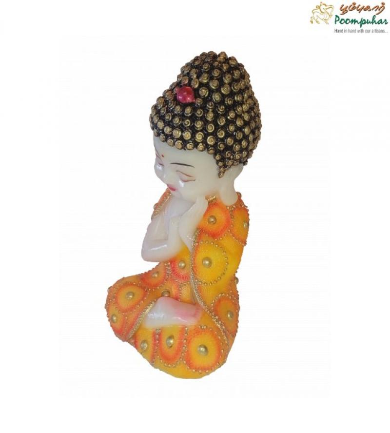 - Color: Adorned in soothing hues of gold, cream, and earthy tones, the figurine reflects the tranquil essence of Baby Buddha, creating a visually calming display that enhances the spiritual ambiance of any room.