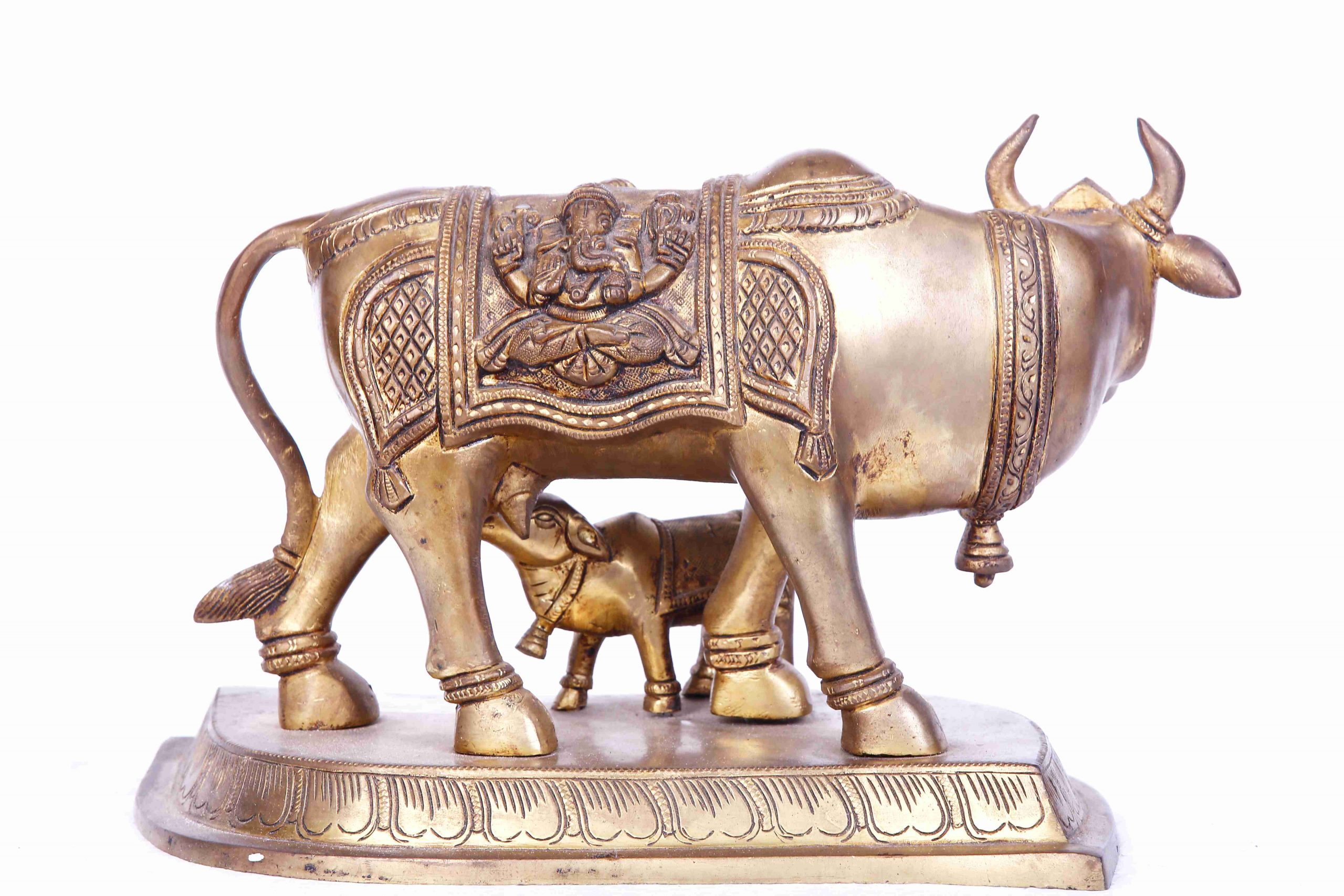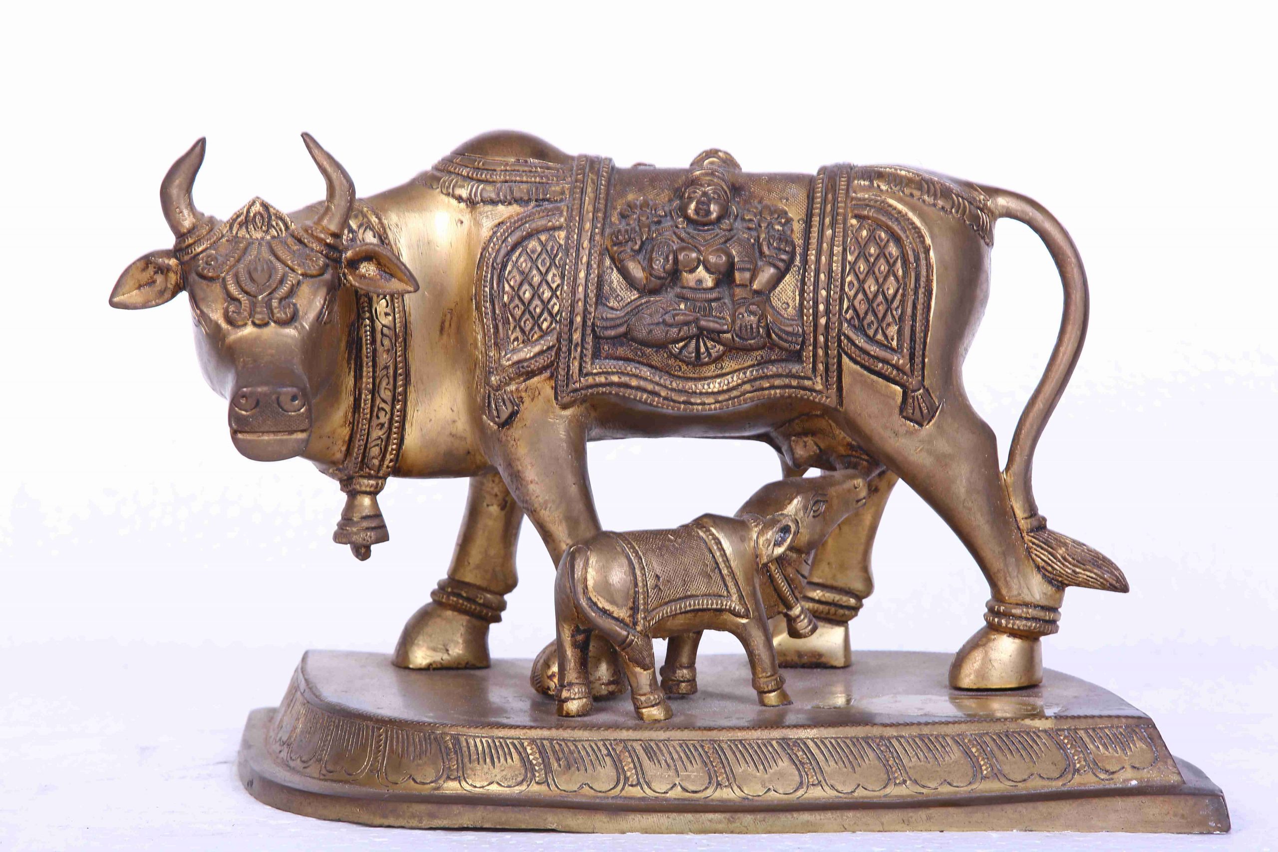 Celebrate the timeless symbol of nurturing love and prosperity with this exquisitely crafted Brass Cow and Calf