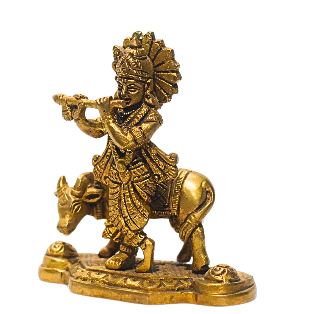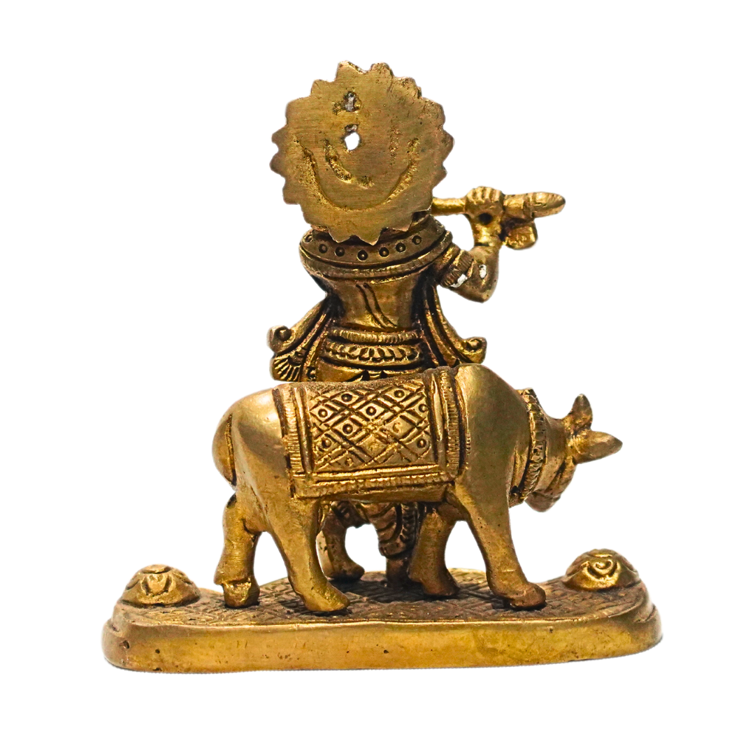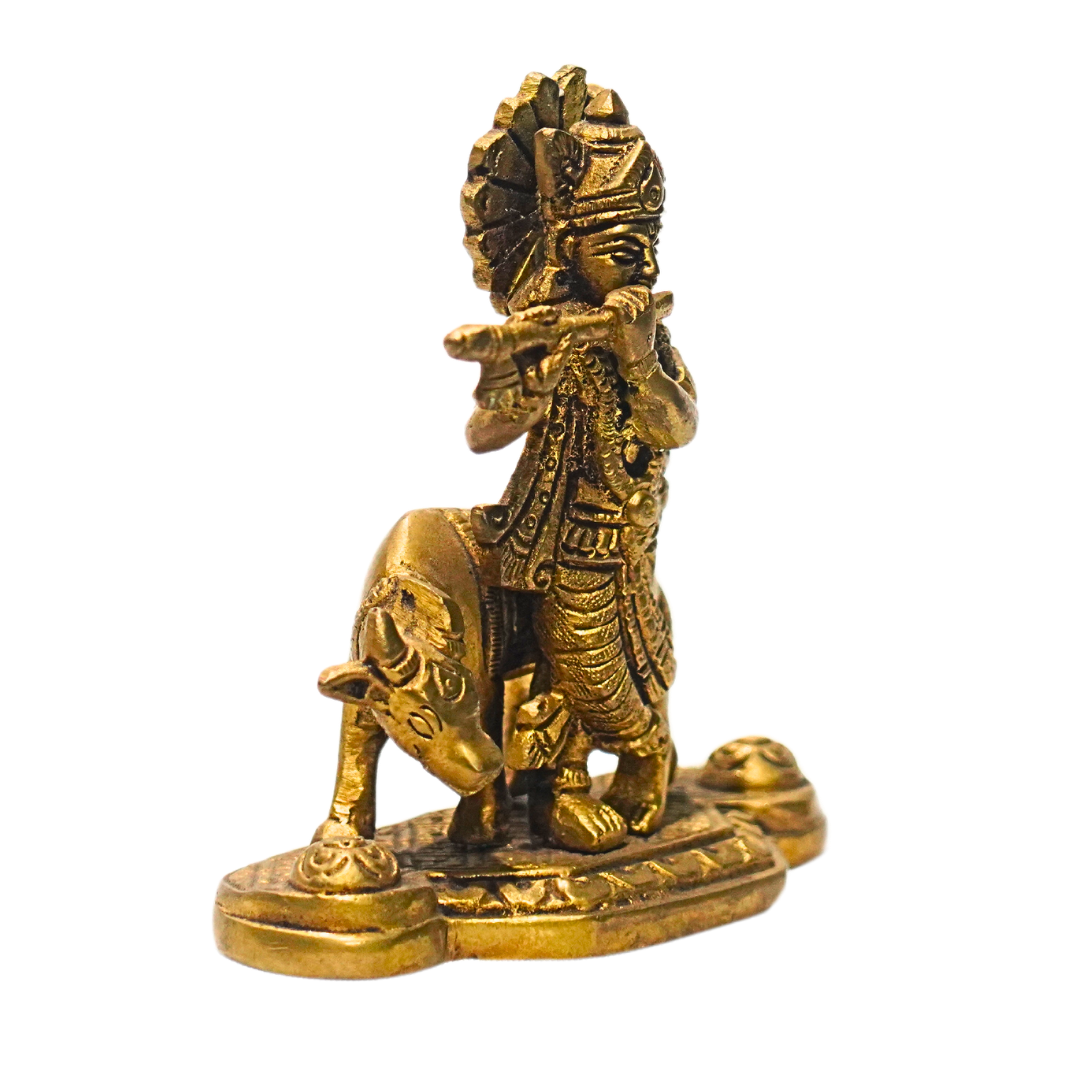 - Handcrafted Brass Artistry: This 4-inch Brass Cow Krishnan figurine is meticulously crafted from high-quality brass, featuring detailed engravings and a polished finish that exemplify traditional craftsmanship and elegance.