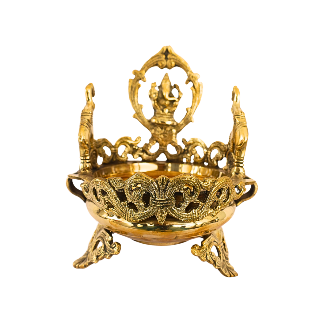 - Premium Brass Craftsmanship: Crafted from high-quality brass, this elephant uruli is durable, long-lasting, and designed to develop a beautiful patina with age. The fine handcrafted detailing and polished brass finish make this a visually striking and meaningful piece, suitable for those who appreciate traditional Indian art and religious symbolism.