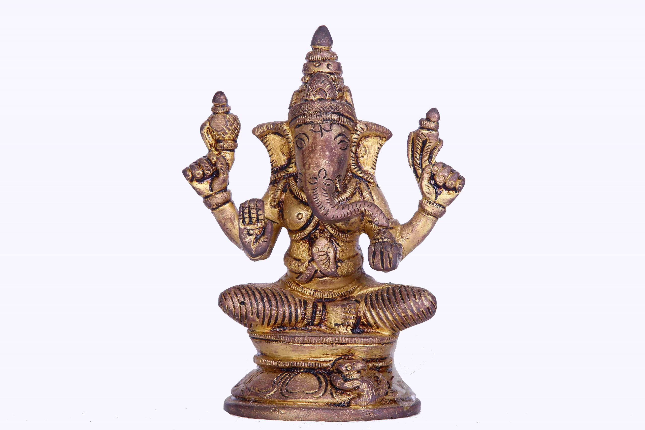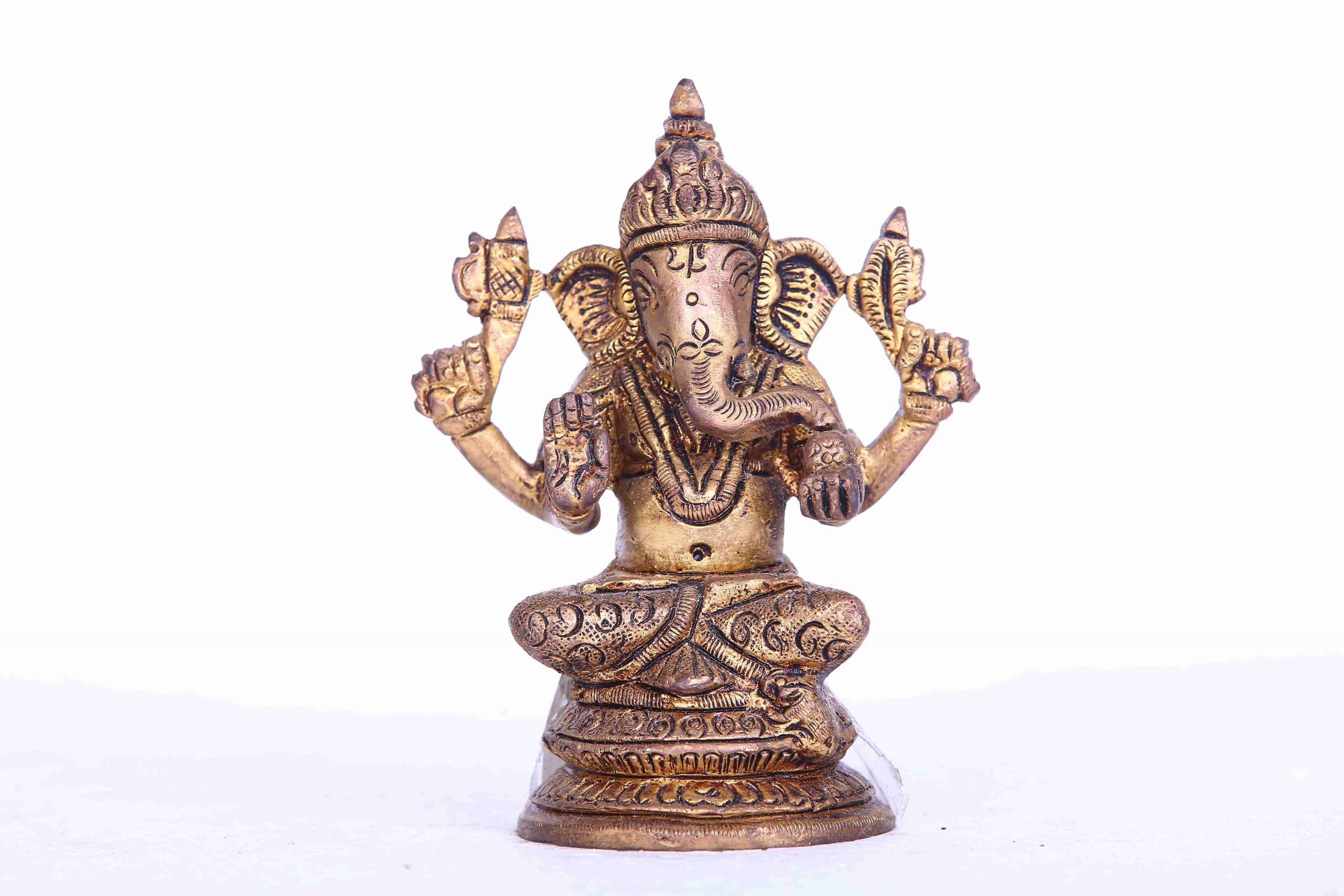 Brass Ganesh Idol | Handcrafted | Auspicious Home Décor & Gift | Antique Finish | Ideal for Pooja Room, Office & Gifting