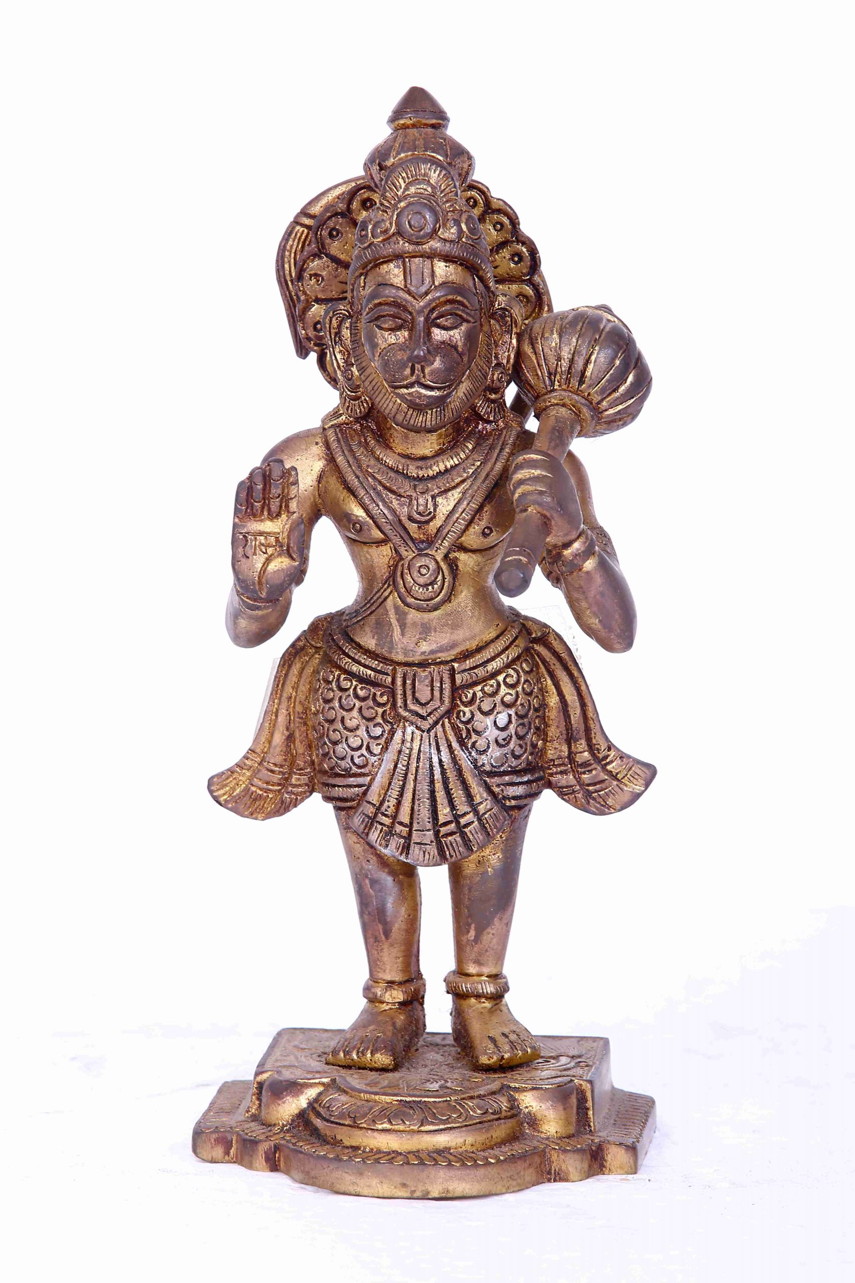 Brass Hanuman Idol | Handcrafted Hindu God Statue | Home Temple & Vastu Decor | Antique Finish