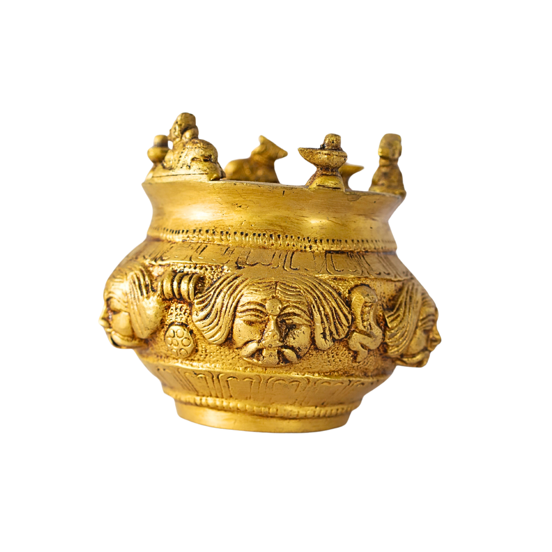- Premium Brass Construction: Crafted from high-quality brass, this 4-inch Kabaalam mask offers long-lasting durability and a rich, polished finish. The statue’s golden hue reflects light beautifully, adding a touch of elegance and spirituality to any space.