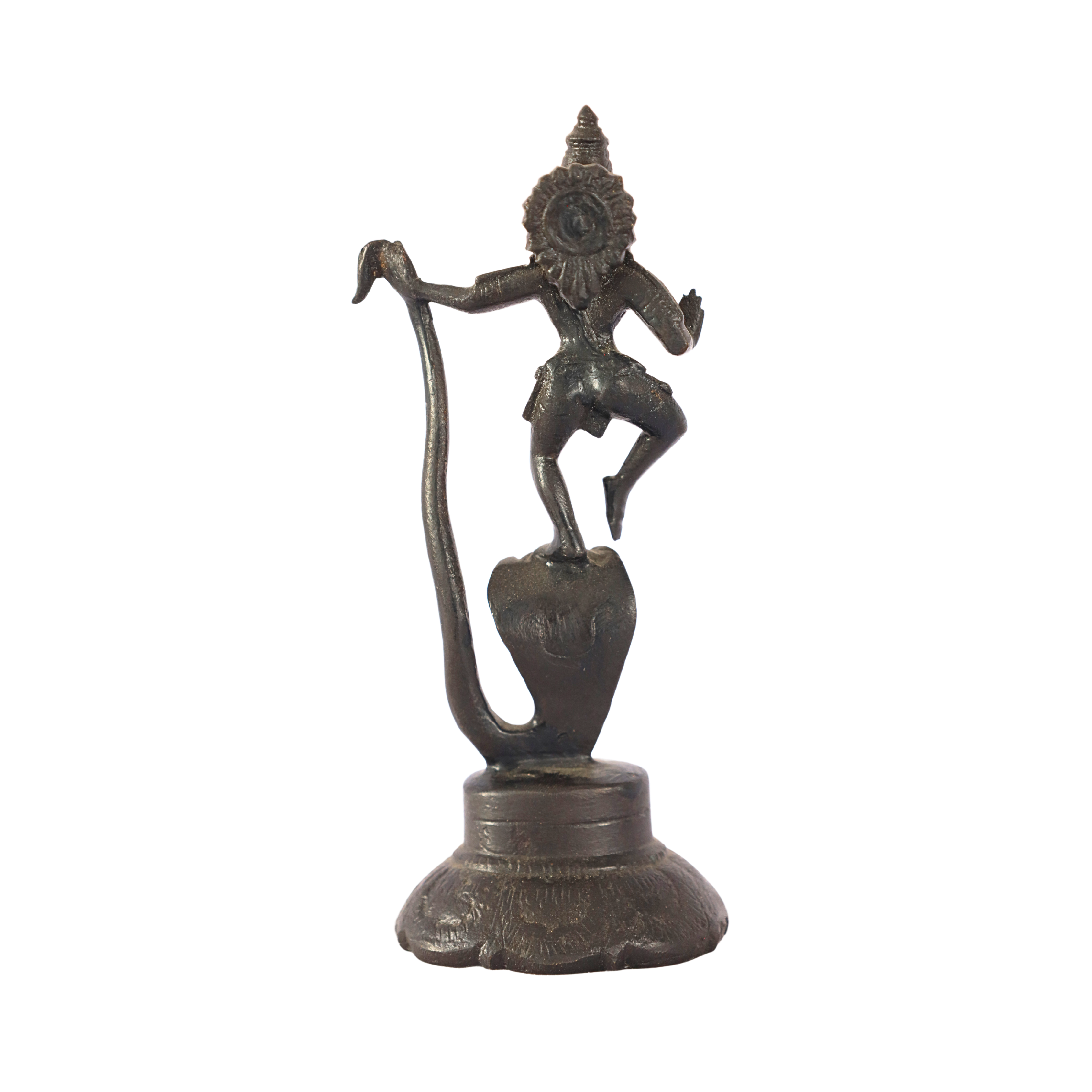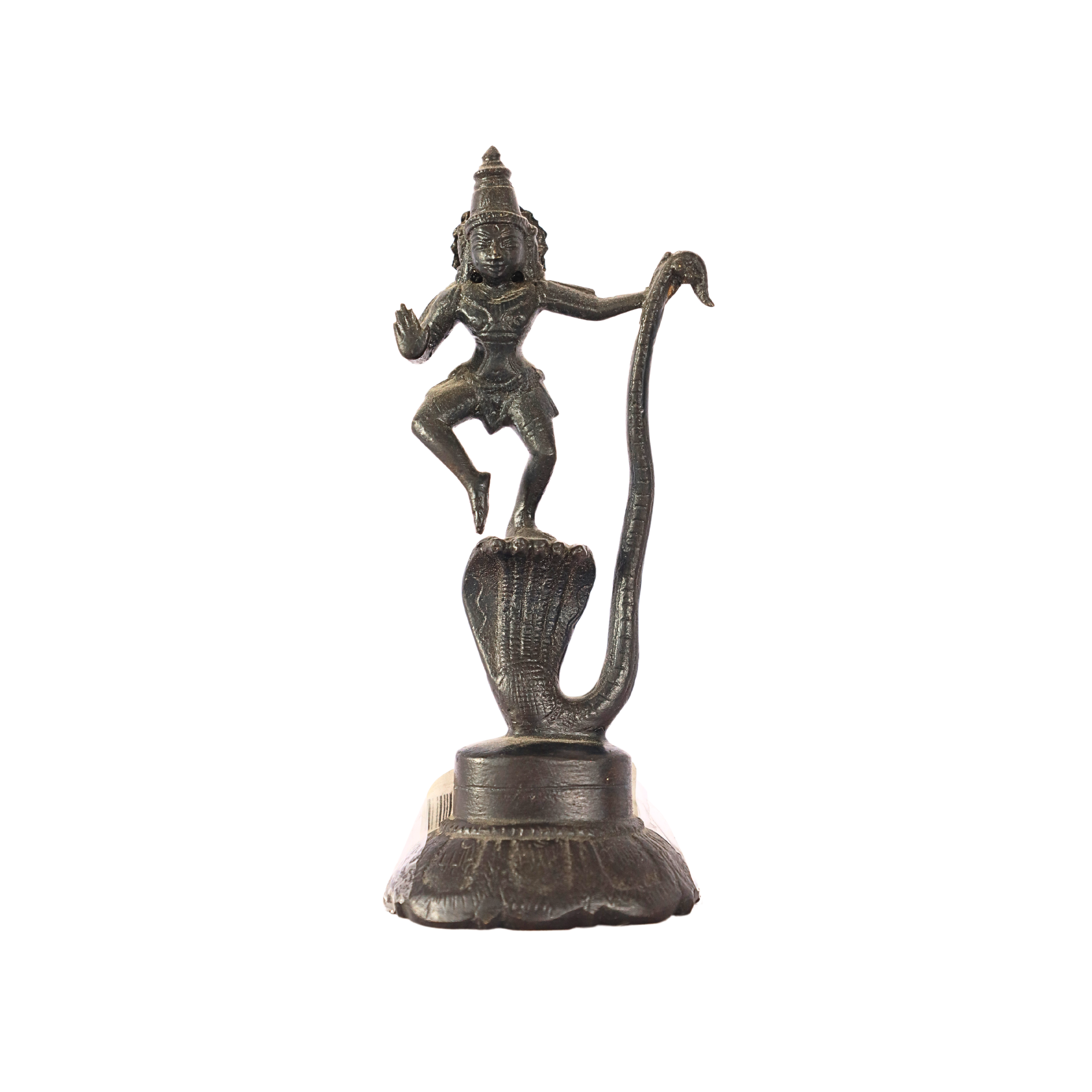 • Design: Features intricate detailing, showcasing Lord Krishna in his iconic pose as he tames the multi-headed serpent, symbolizing strength, devotion, and divine power.