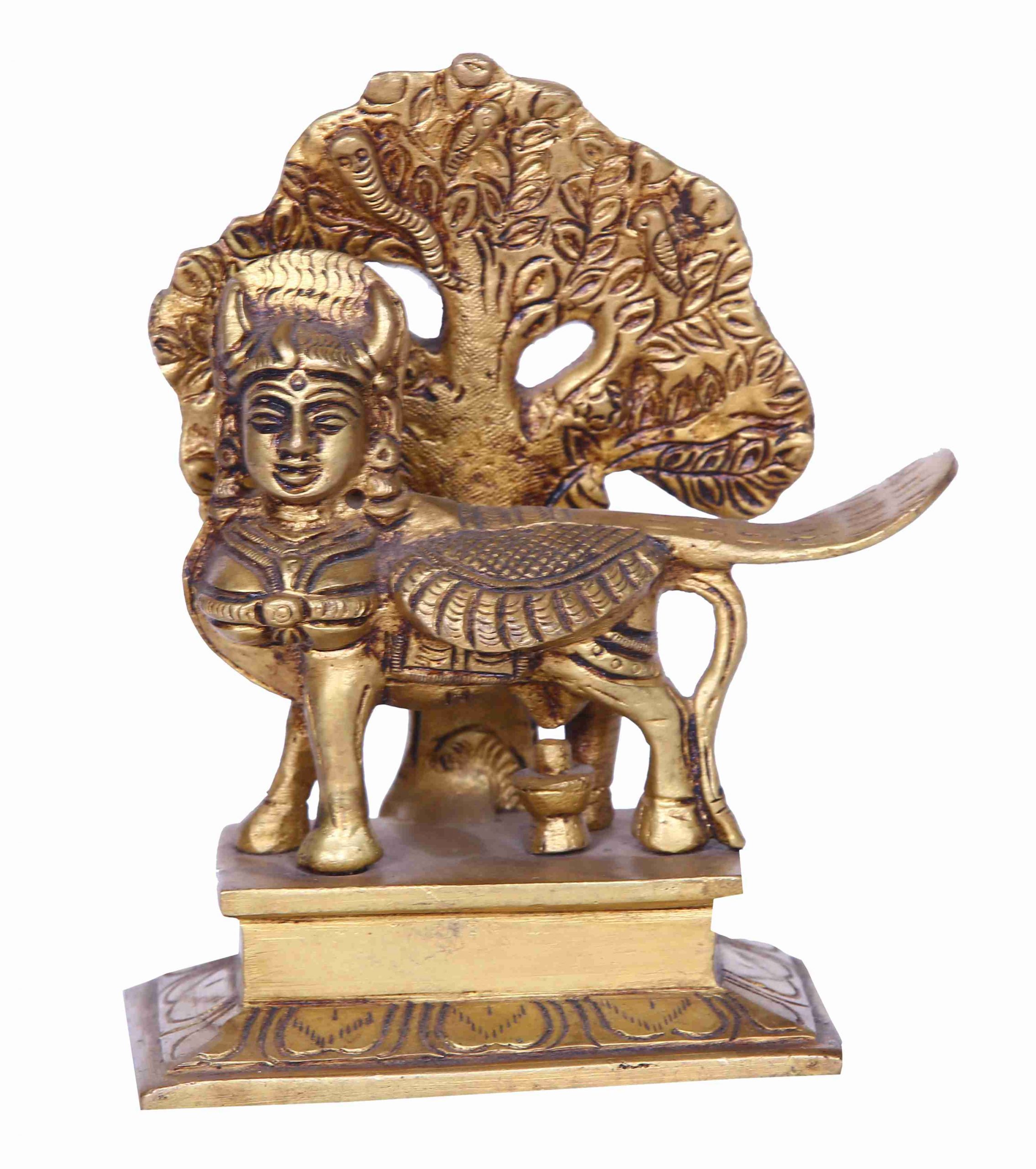 This elegant piece is meticulously sculpted by skilled artisans using traditional metal casting techniques passed down through generations. With fine detailing and a regal posture, Kamadhenu is depicted alongside her divine calf Nandini, resting peacefully — a powerful representation of nurturing energy and divine benevolence.