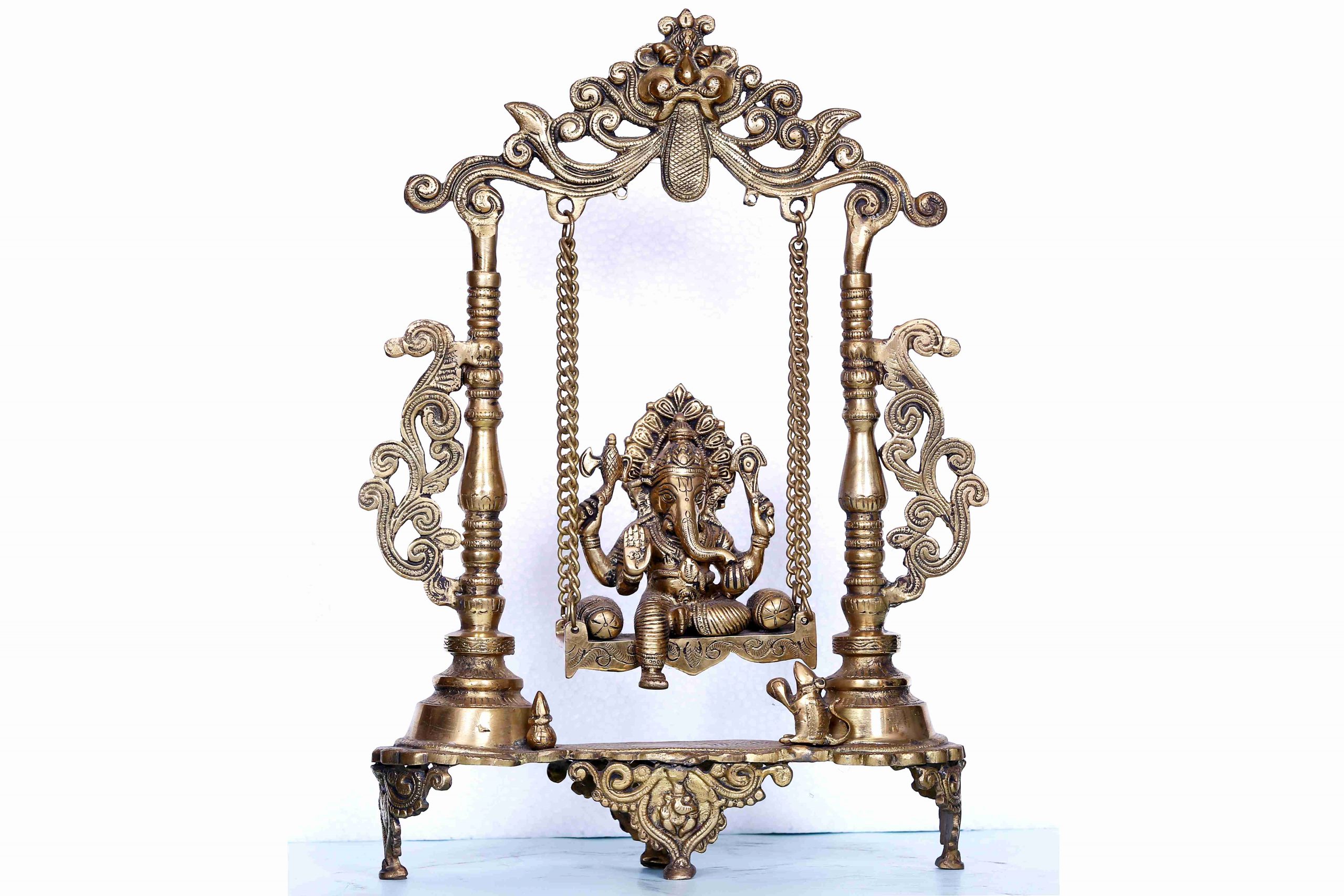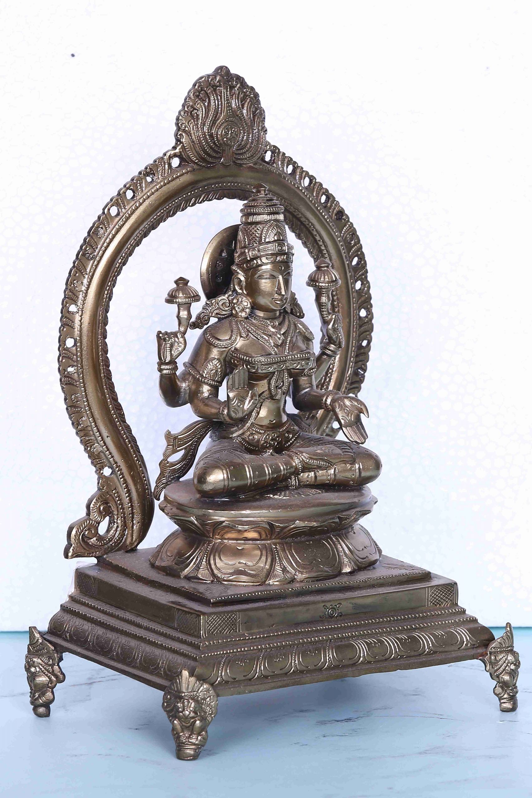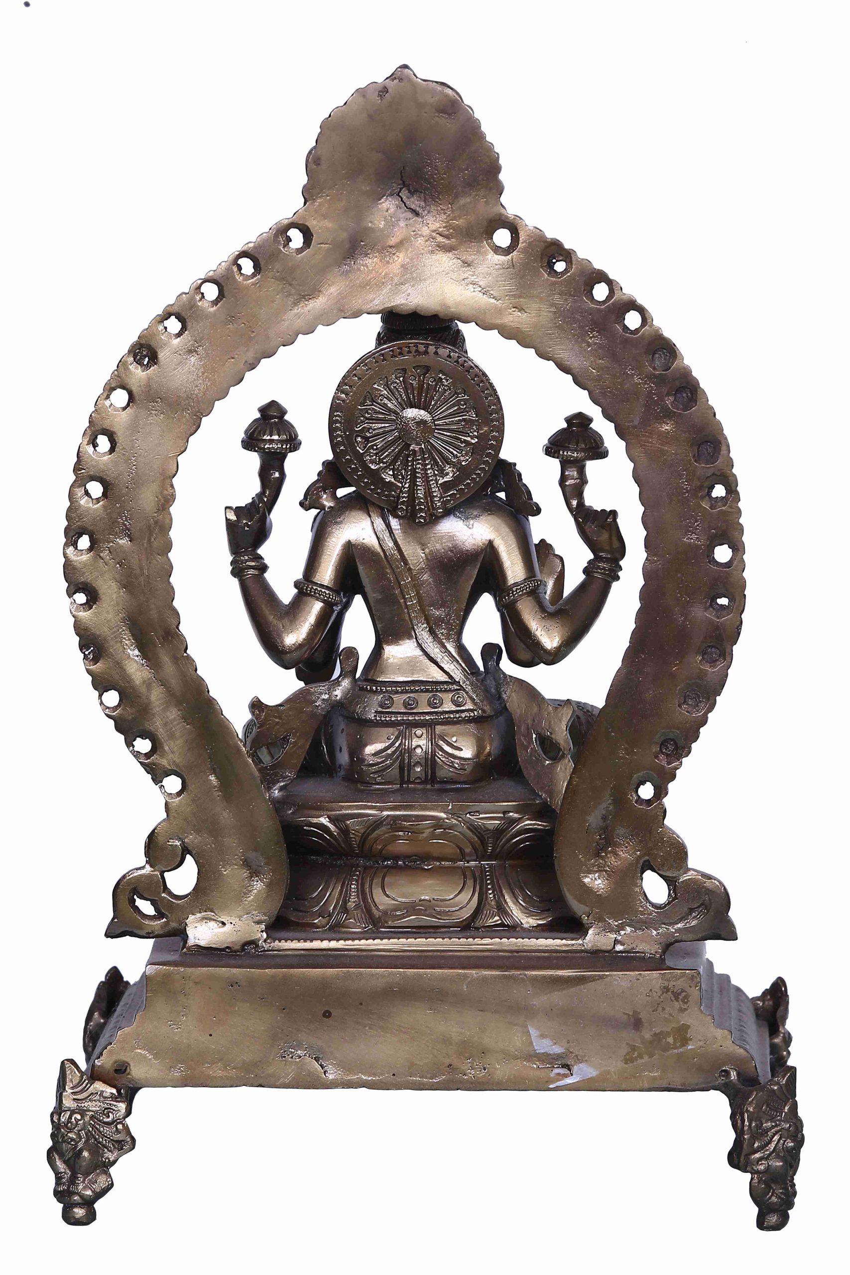 Made from high-quality brass with intricate detailing, this masterpiece showcases traditional craftsmanship with an antique finish that adds a timeless appeal. The arch frame, adorned with elegant motifs, further elevates its beauty, making it a perfect centerpiece for your puja room, home décor, or gifting purposes.