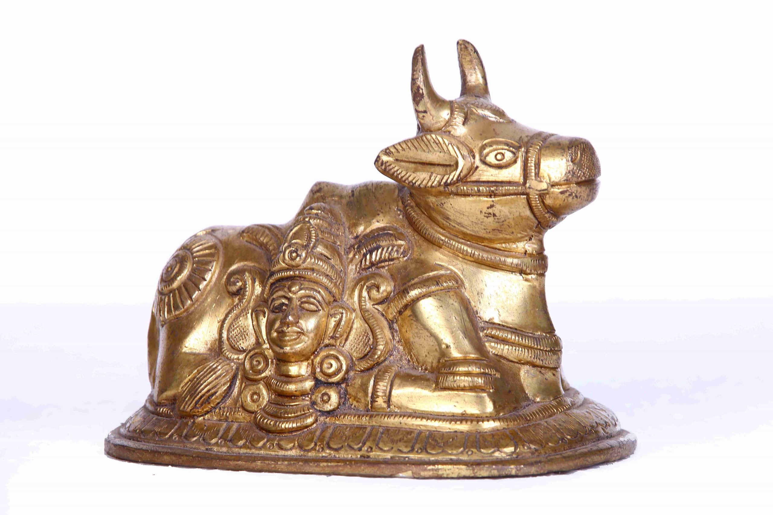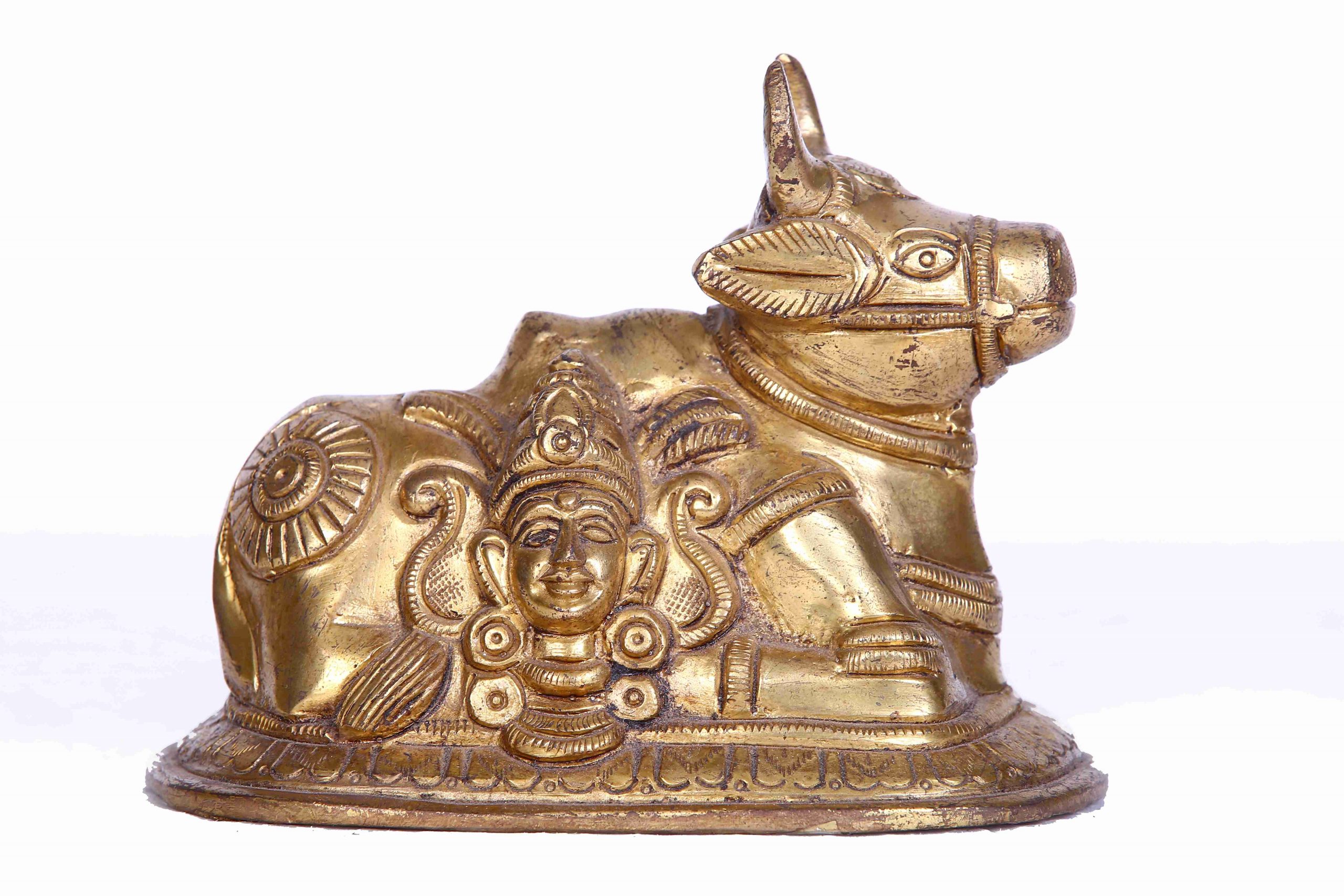 Brass Nandhi Idol | Handcrafted | Antique Finish | Home Temple & Décor