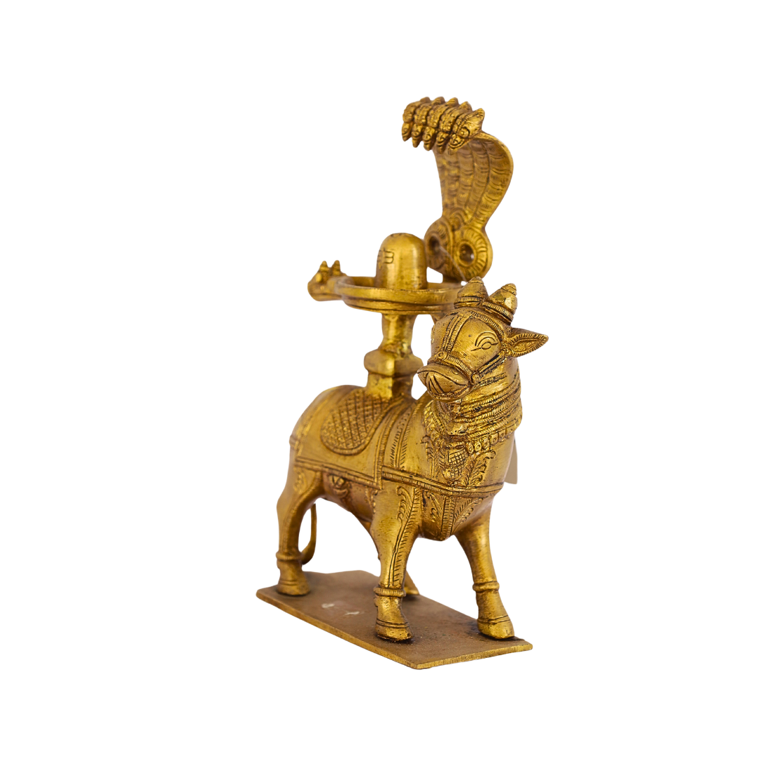 - Premium Brass Construction: Made from high-quality brass, this sculpture boasts durability and a polished brass finish, which ensures a bright, lustrous shine. The intricate detailing on both the SivaLinga and Nandhi captures the spiritual significance and traditional craftsmanship of this sacred pairing.