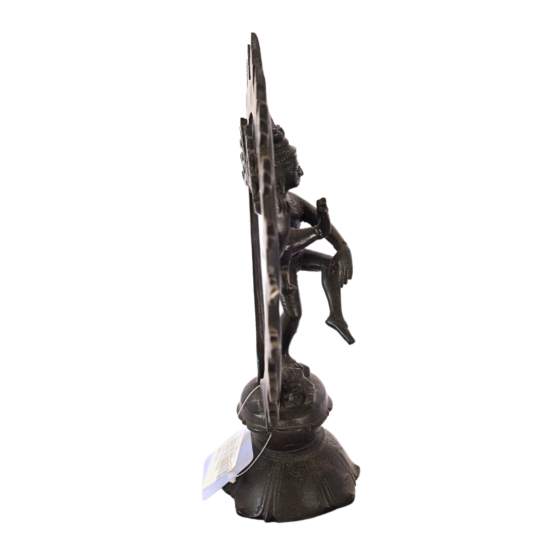 - Design: The statue depicts Lord Shiva in his iconic Nataraja dance, one of the most revered and powerful representations of Shiva’s cosmic form. He is shown with his left leg raised, symbolizing the destruction of evil, and his right leg grounded, representing stability and creation. The fire circle (representing the cosmic energy) encircles Shiva, symbolizing the eternal rhythm of the universe. Shiva’s hand gestures, or mudras, hold symbolic significance in the dance, representing knowledge, protection, and blessings.