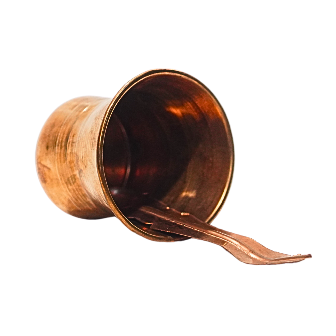 - Artisan Brass Craftsmanship: This 3-inch Brass Pancha Pathiram Set is meticulously handcrafted from high-quality brass, featuring intricate detailing and a polished finish that reflects traditional artistry and durability.