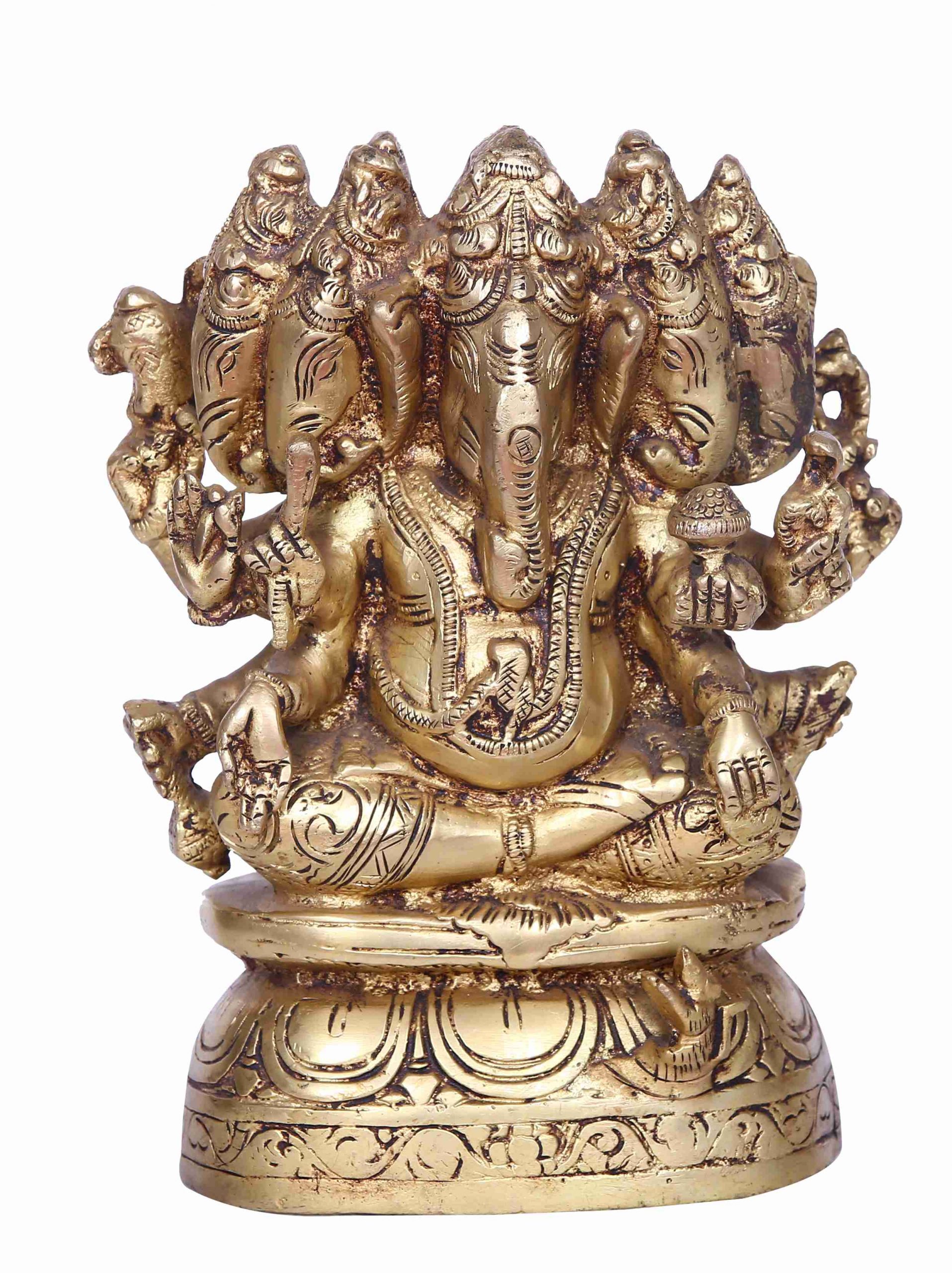 Brass Panchamukha Ganesh Idol | Handcrafted Decorative Murti for Home, Pooja & Gifting | Traditional Indian Vastu Showpiece (5-Faced Ganesha)