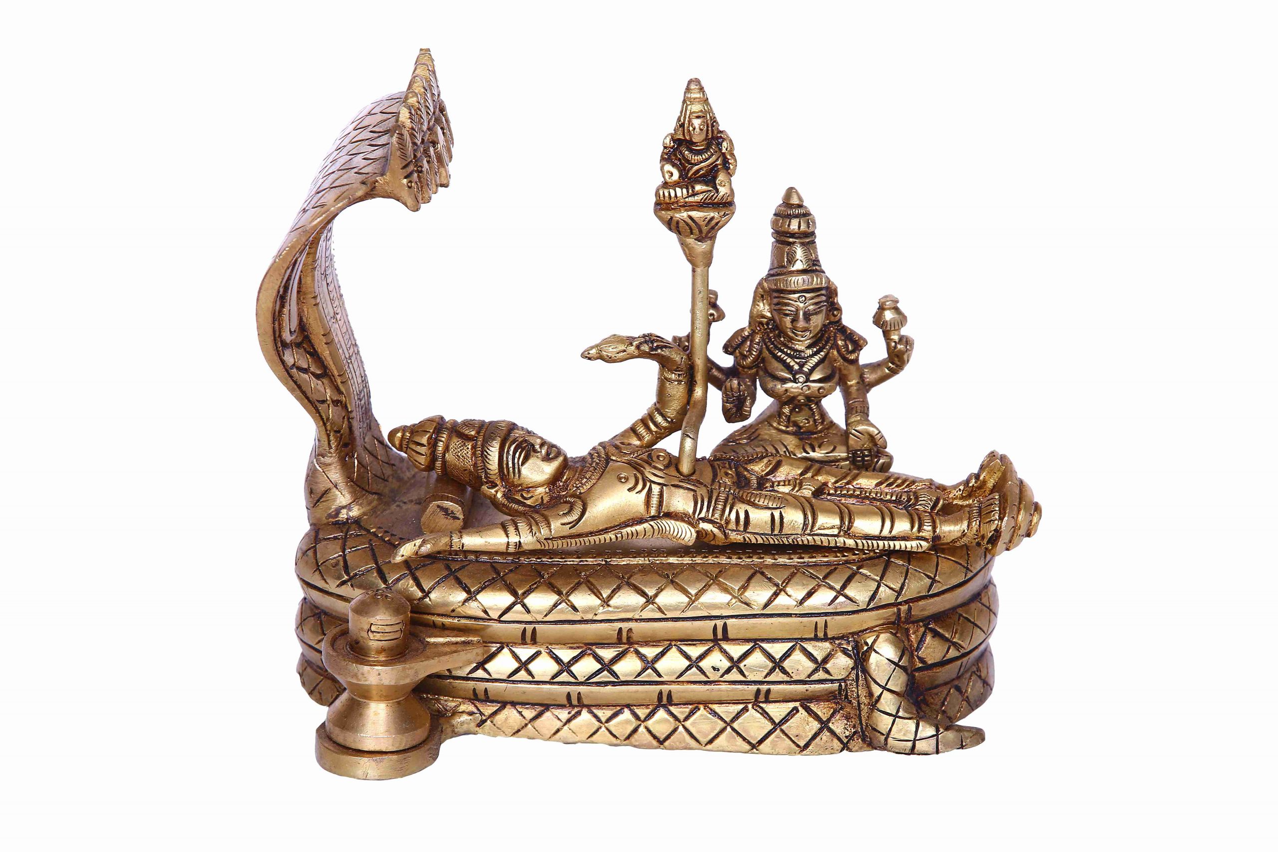 Experience the sacred confluence of Vaishnavism and Shaivism through this exquisitely crafted Ranganathar Sivalingam. This unique idol seamlessly blends the serene form of Lord Ranganatha (Vishnu) resting on Adisesha with the symbolic Sivalingam (Shiva), representing the harmony of divine energies.