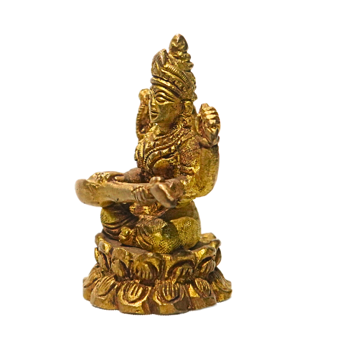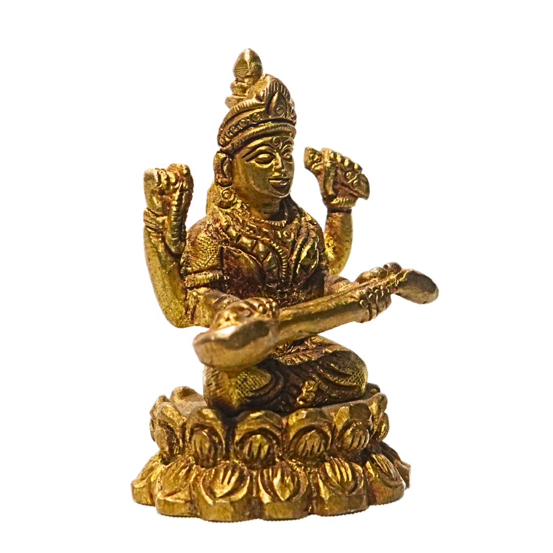Brass Saraswathi – 2 Inch | Handcrafted Brass Saraswati Figurine | Traditional Hindu Decorative Piece