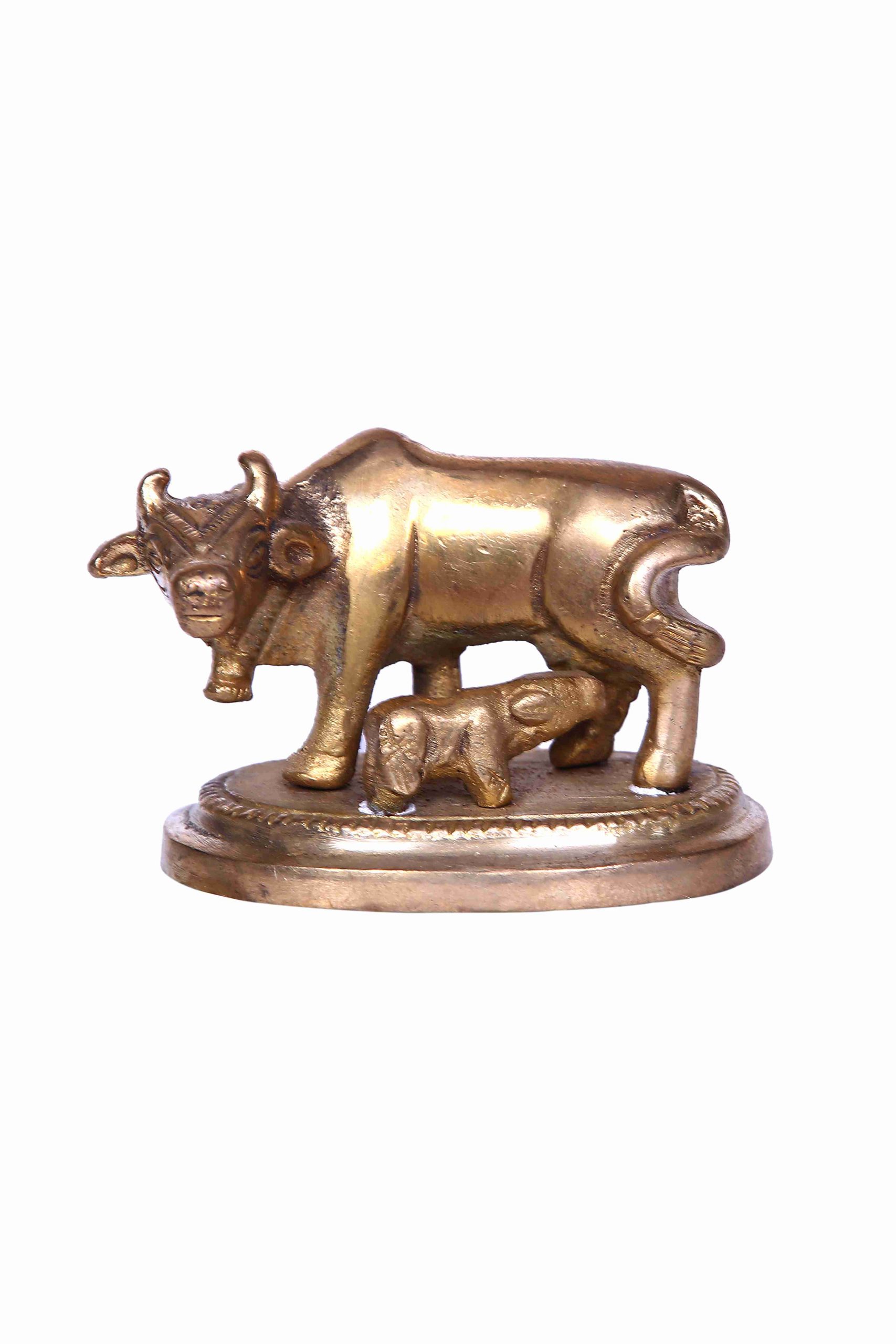 The cow, revered as a sacred symbol in Indian culture, is shown nurturing her calf—capturing the eternal bond between mother and child. Cast using traditional metalworking techniques, each piece reflects a fine balance of artistic finesse and devotional symbolism.