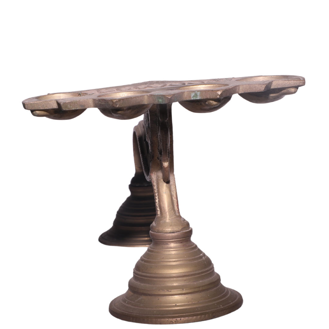 5-Inch Bronze 4-Face Villakku – Traditional Oil Lamp for Spiritual Illumination and Blessings