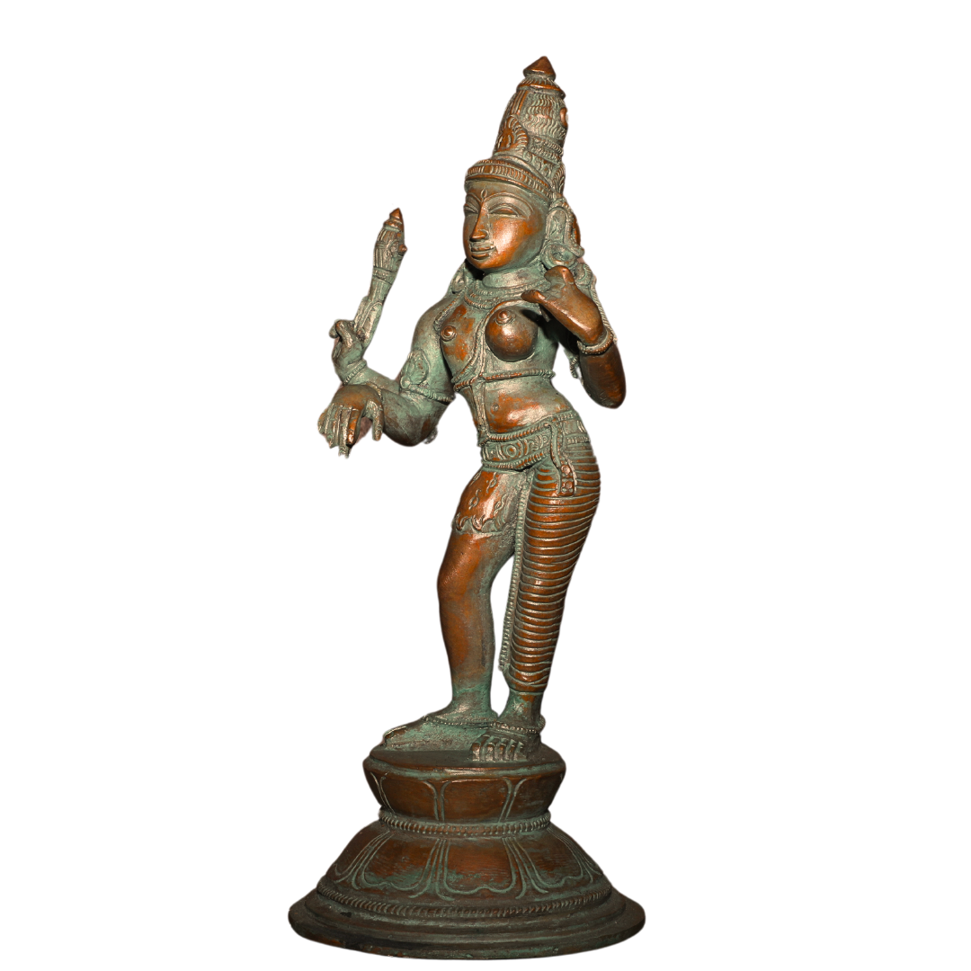 Experience the divine unity of the masculine and feminine energies with this magnificent 10 Inch Bronze Ardhanareeshwar Statue. Handcrafted by skilled artisans, this stunning statue depicts Ardhanareeshwar, the fusion of Lord Shiva and Goddess Parvati, symbolizing the inseparable balance between the male and female principles in the universe. Made from high-quality bronze with an antique finish, this large statue is a powerful spiritual icon that will elevate your pooja room, temple, or sacred space with its profound symbolism and artistic excellence.