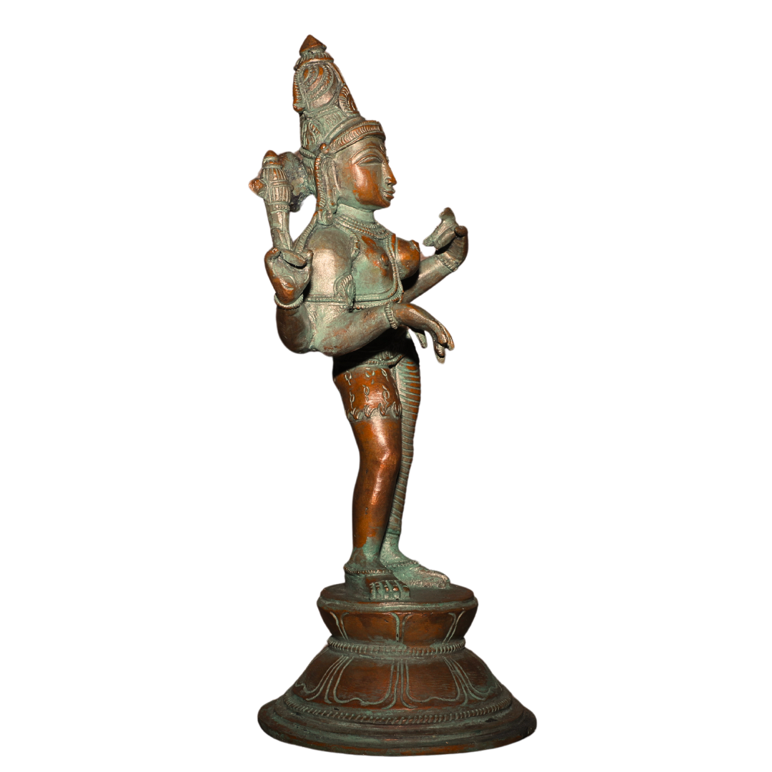 10-Inch Bronze Ardhanareeshwar Statue – Traditional South Indian Temple Art