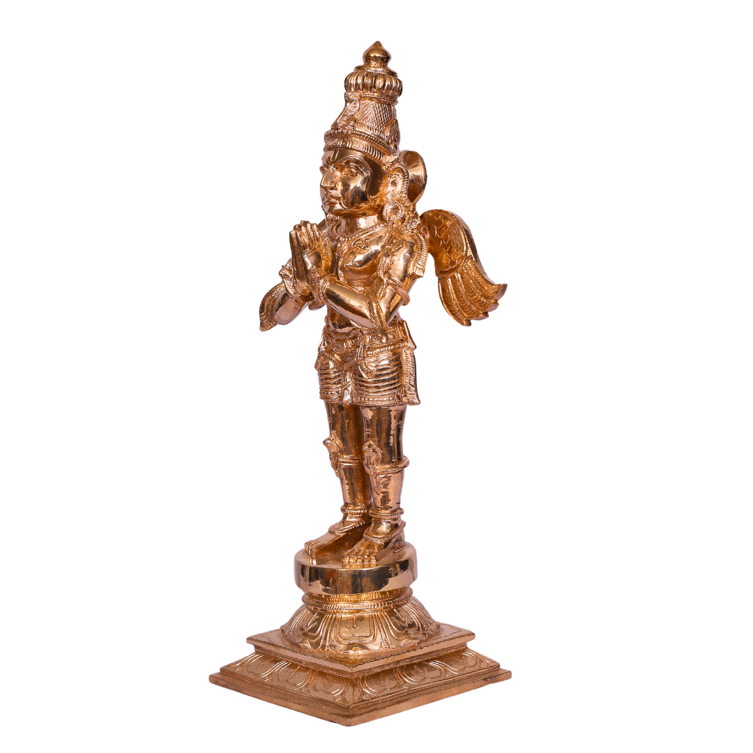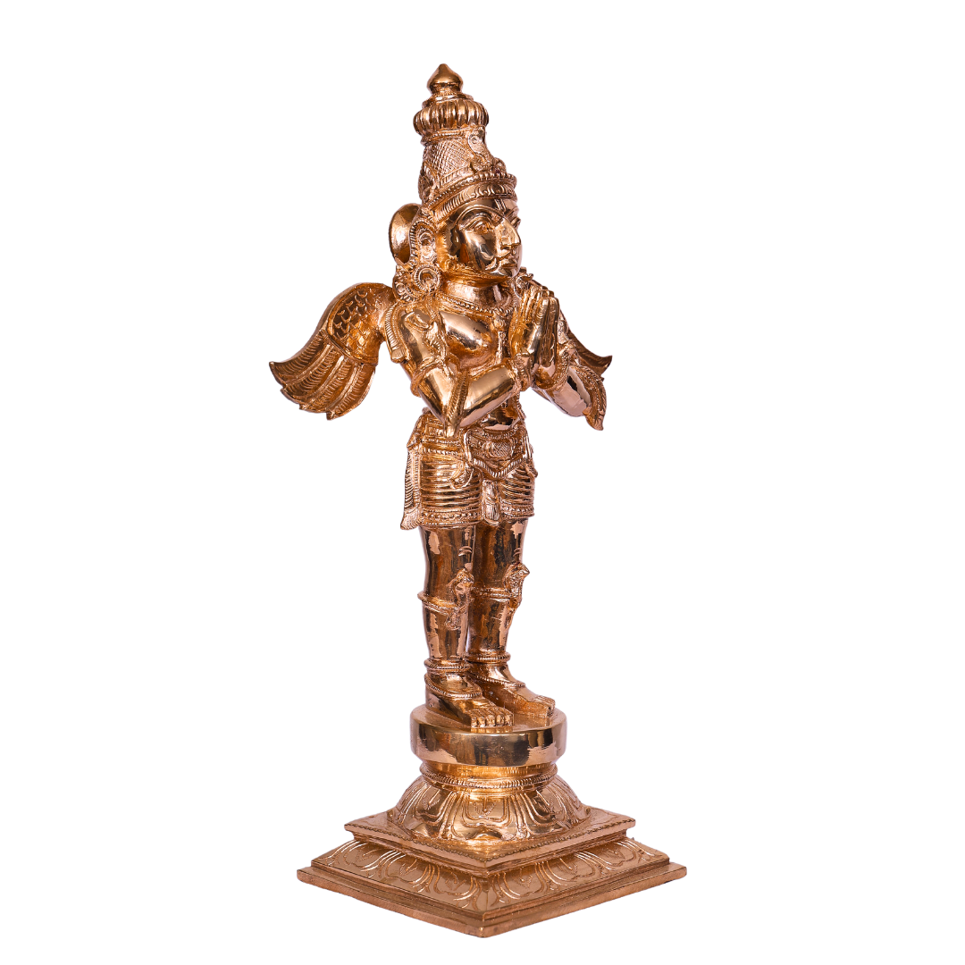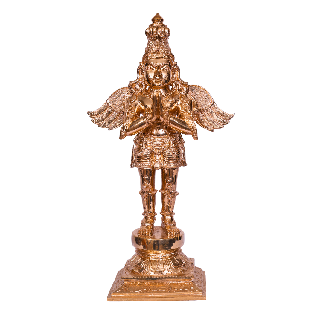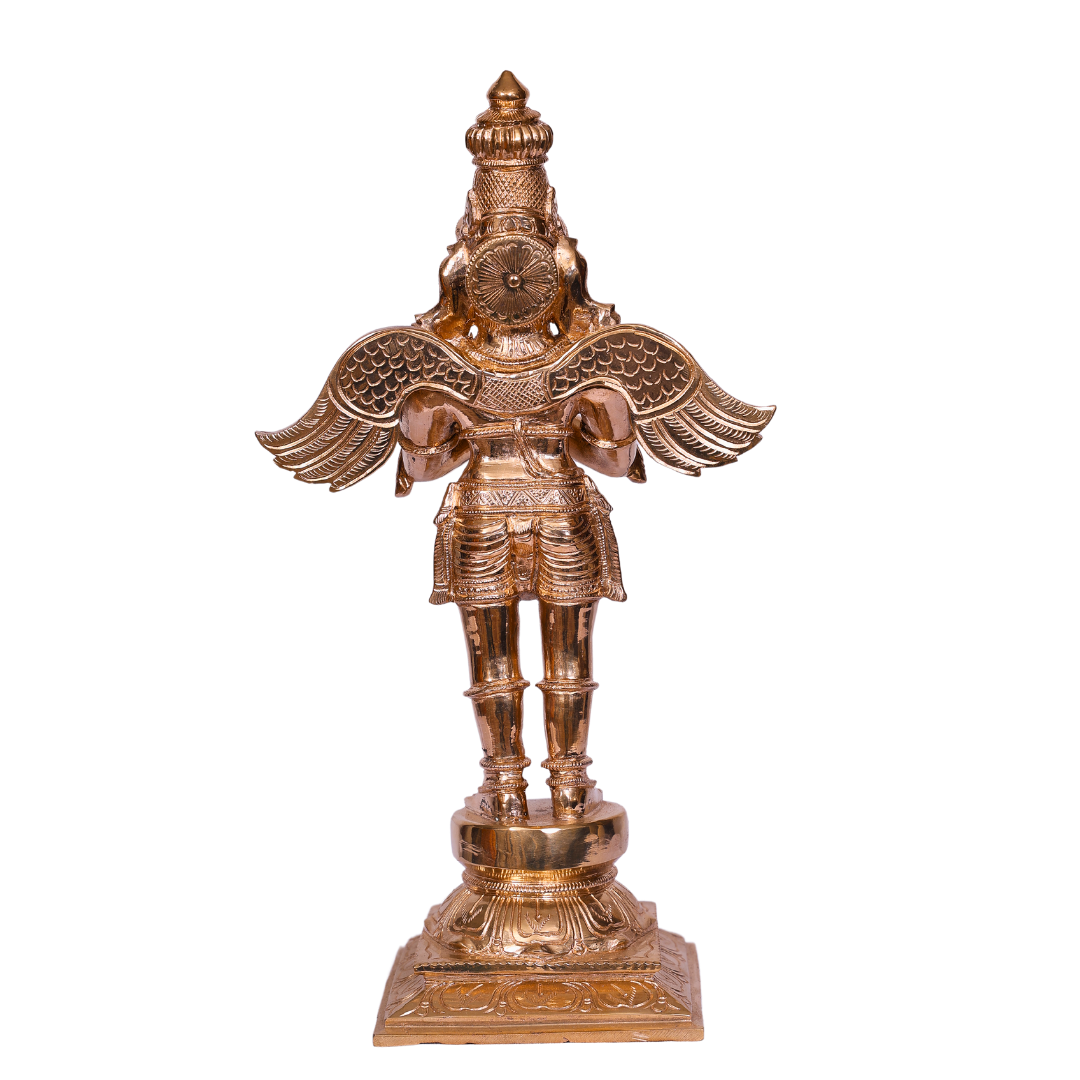 This magnificent 6-inch Bronze Garudan Statue represents Garuda, the divine eagle and the majestic mount (vahana) of Lord Vishnu. Revered for his strength, loyalty, and devotion, Garuda is one of the most powerful and revered figures in Hindu mythology. Handcrafted with exceptional artistry and attention to detail, this statue serves as a powerful symbol of protection, freedom from negative energies, and divine guidance.