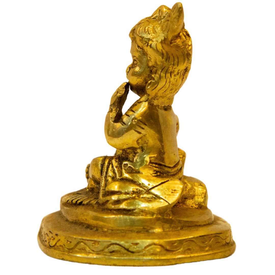 4-Inch Brass Krishna Sitting Statue – Handcrafted Divine Idol for Devotion, Peace & Spiritual Blessings