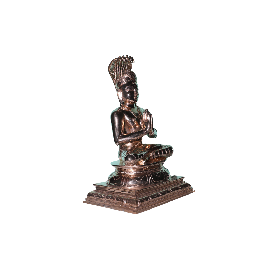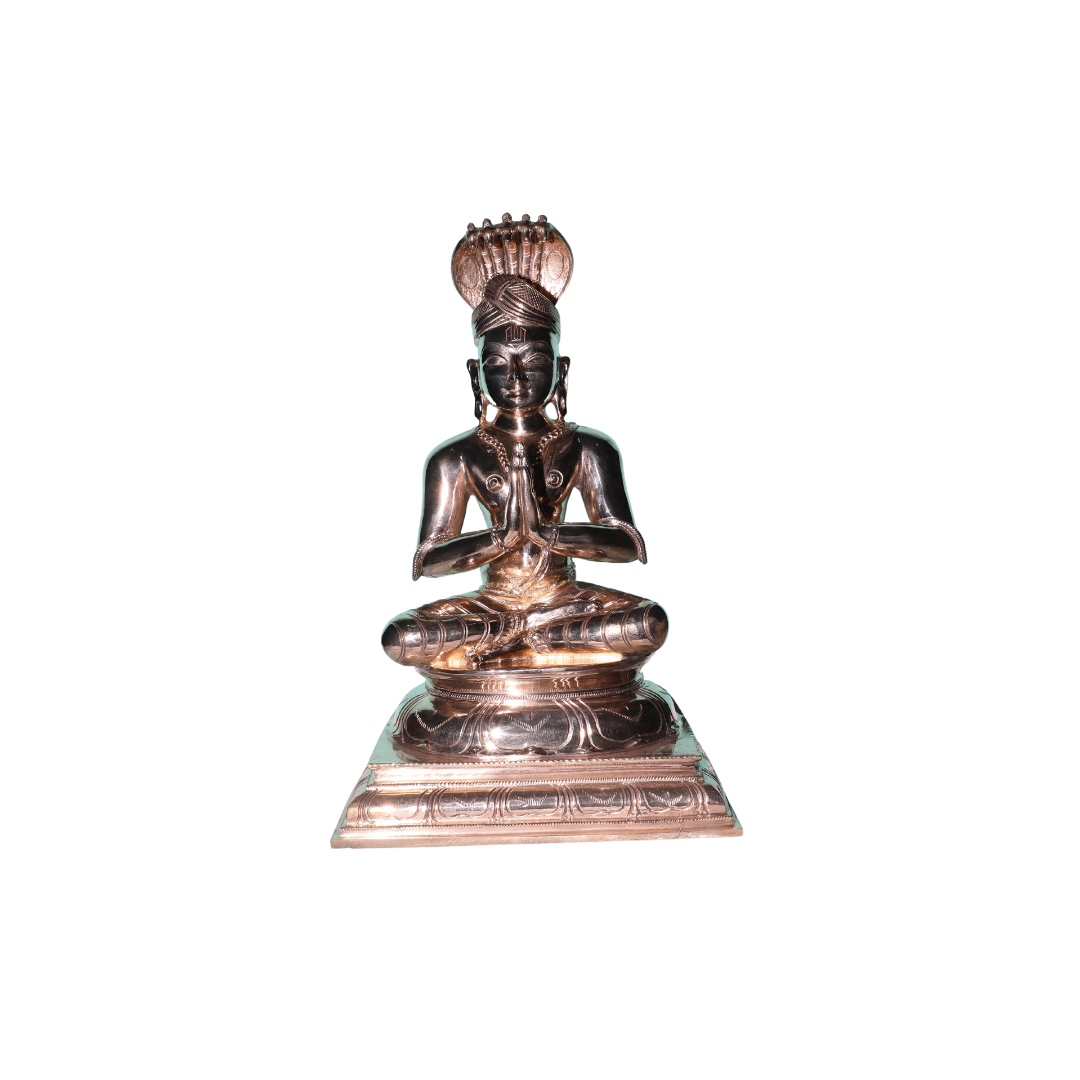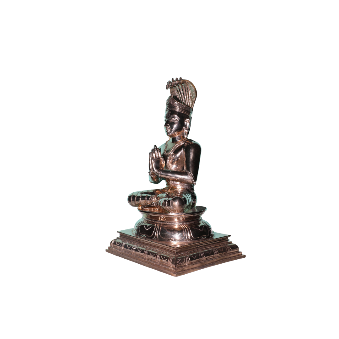 Celebrate the divine wisdom and spiritual presence of Manavaalamaamuni with this exquisitely crafted 12-Inch Bronze Statue. Manavaalamaamuni, a revered sage and devotee of Lord Vishnu, is known for his deep spiritual knowledge and his devotion to the path of righteousness. Handcrafted by skilled artisans, this statue captures the serene and meditative essence of the sage, making it a perfect addition to your pooja room, temple, or sacred space. Made from premium-quality bronze with an antique finish, this statue radiates divine energy, wisdom, and peace.