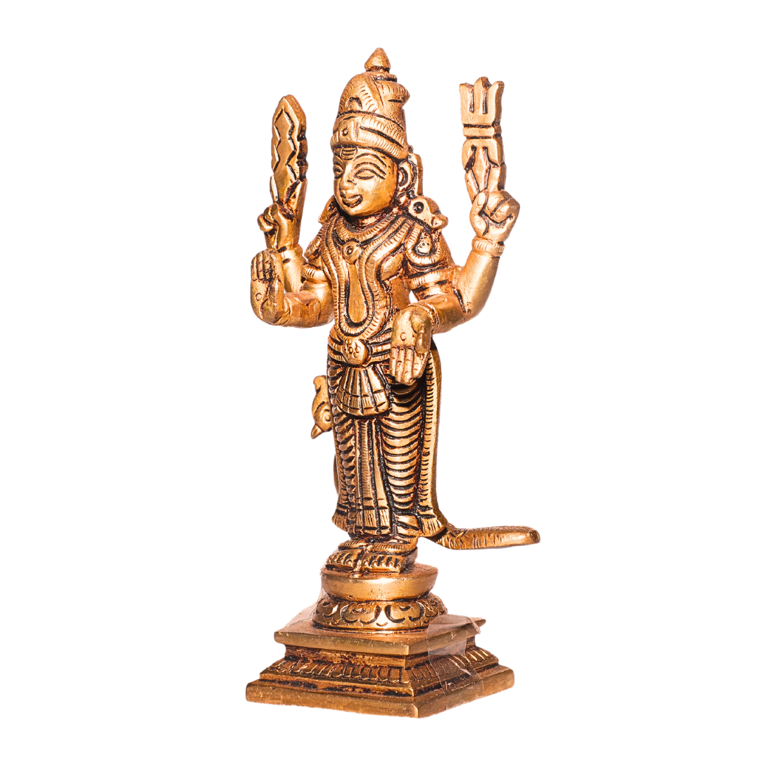 The 6-Inch Bronze Murugan Statue is a meticulously crafted depiction of Lord Murugan, the revered Hindu deity known as the god of war, wisdom, and victory. This small yet powerful bronze statue makes an ideal addition to any home altar, spiritual space, or decor collection, inviting divine protection and positive energy.