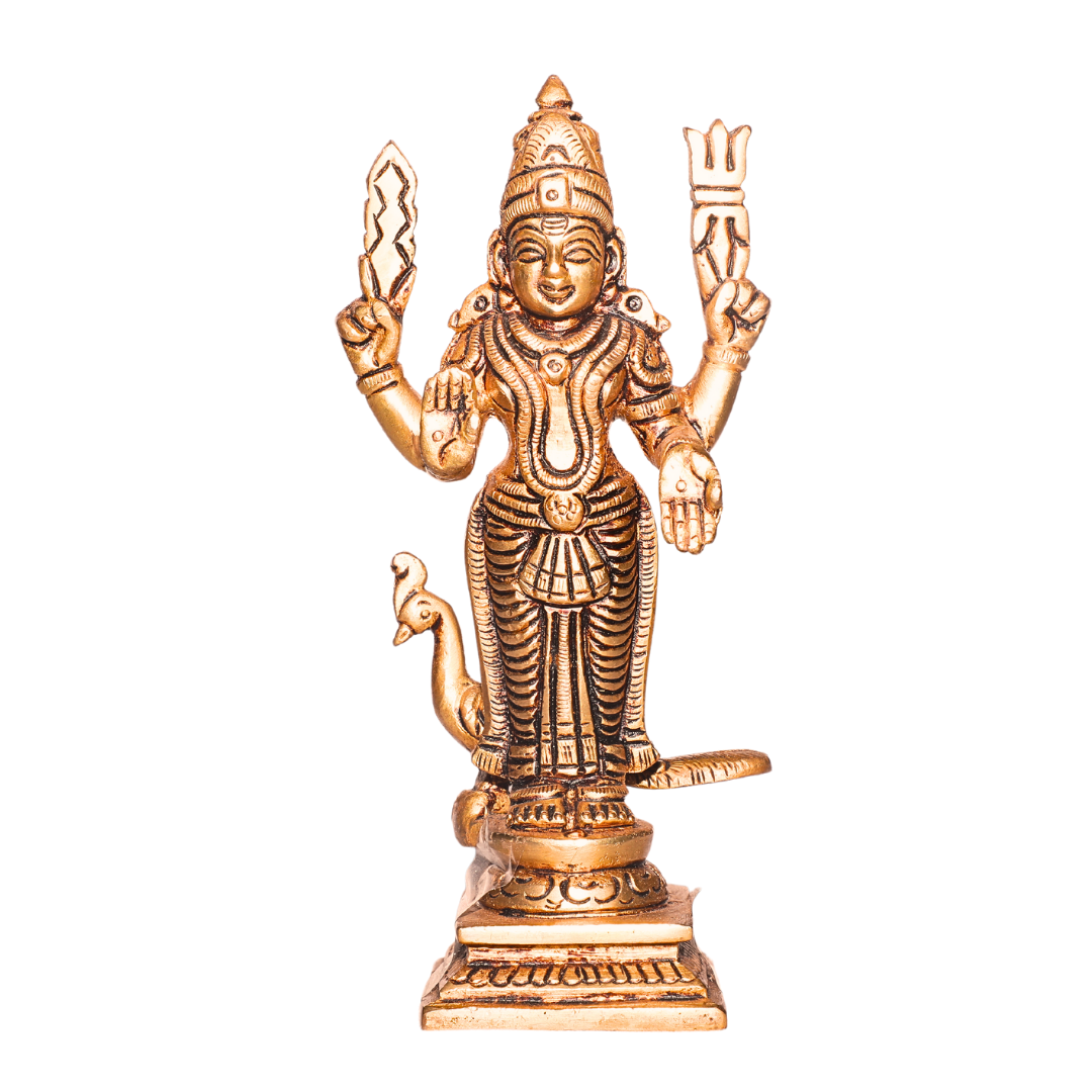 Enhance your surroundings with the presence of Lord Murugan through this 6-Inch Bronze Statue—a beautifully detailed piece that radiates peace, strength, and spiritual power.