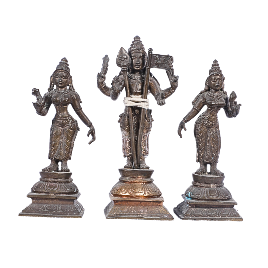 4.3-Inch Bronze Murugar Set – Handcrafted Hindu Deity Sculpture for Worship & Décor