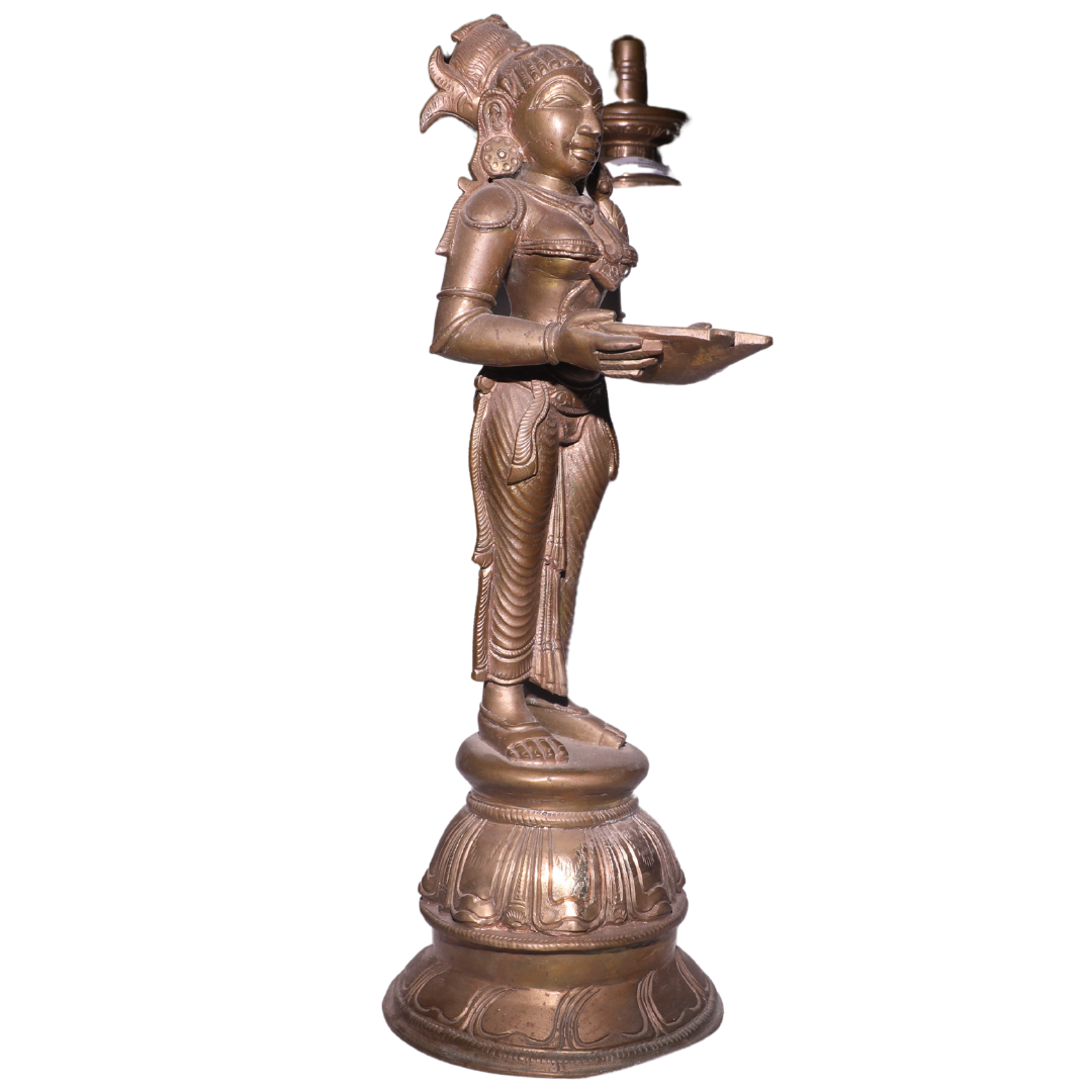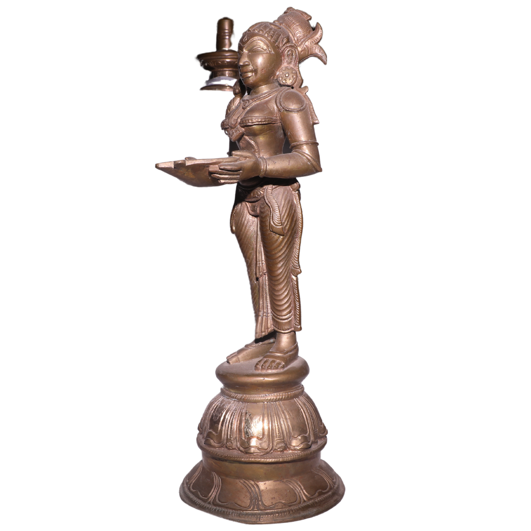 12-Inch Bronze Paavai Vilakku – Traditional Oil Lamp for Spiritual Illumination and Blessings