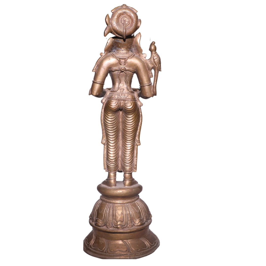 The 12-Inch Bronze Paavai Vilakku is a beautifully crafted traditional oil lamp, designed to add a divine glow and spiritual ambiance to any sacred space. This Paavai Vilakku, made from high-quality bronze, is traditionally used in Hindu rituals to symbolize the dispelling of darkness and the welcoming of light, knowledge, and divine blessings. With its elegant design and intricate details, this oil lamp is perfect for use in temples, prayer rooms, or as a decorative centerpiece.