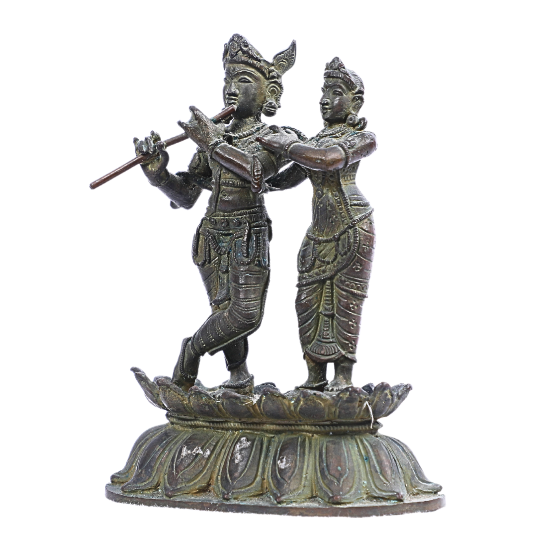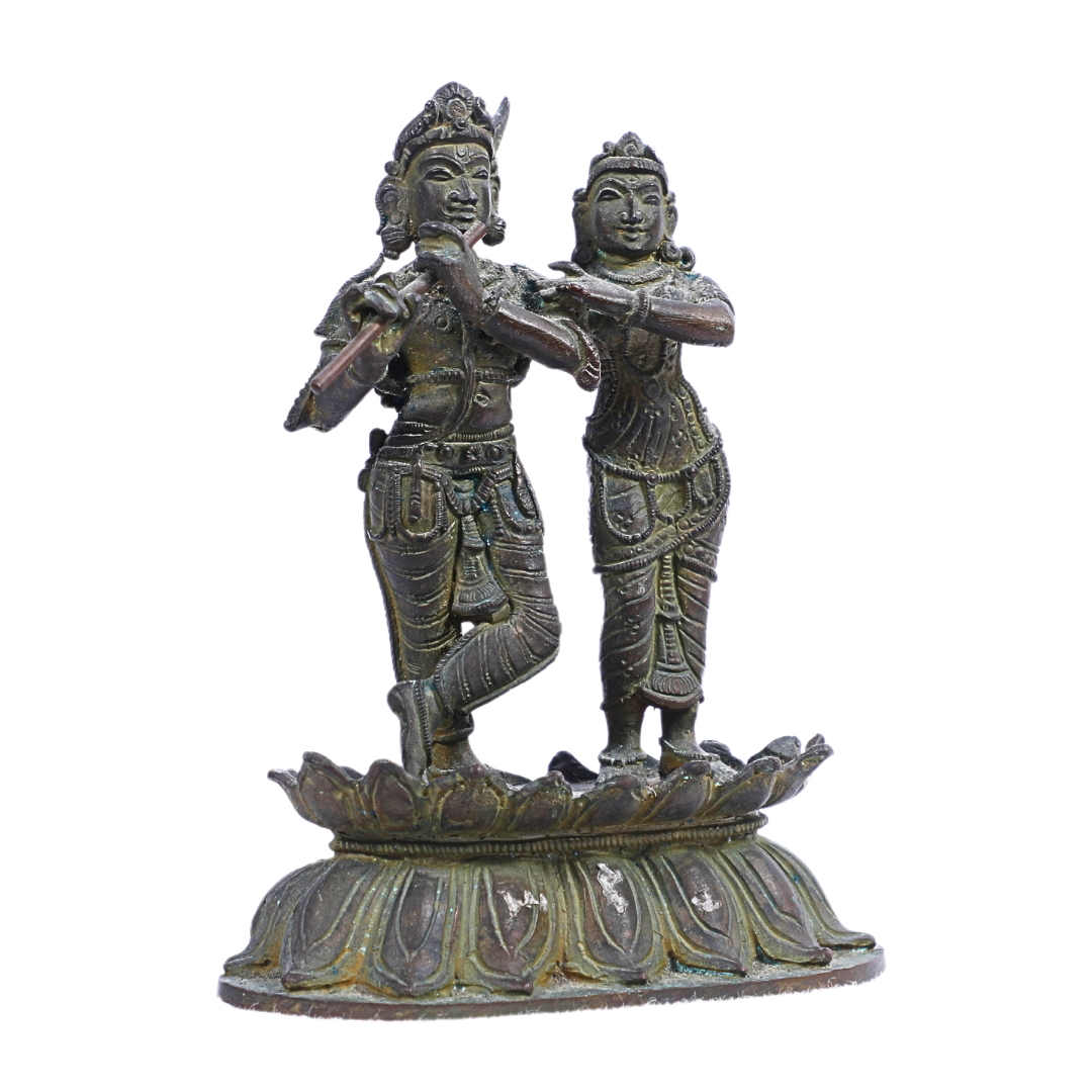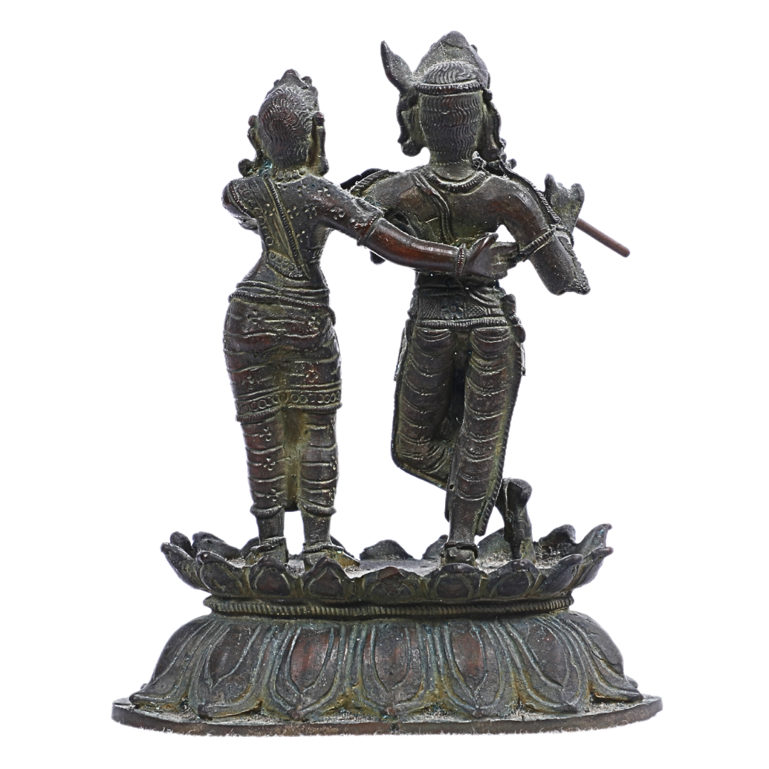 This 6-inch Bronze Radha Krishna figurine is not just a decorative piece but a beautiful representation of divine love and spirituality. Its exquisite design and deep symbolism make it a cherished addition to your home or a thoughtful gift for loved ones.
