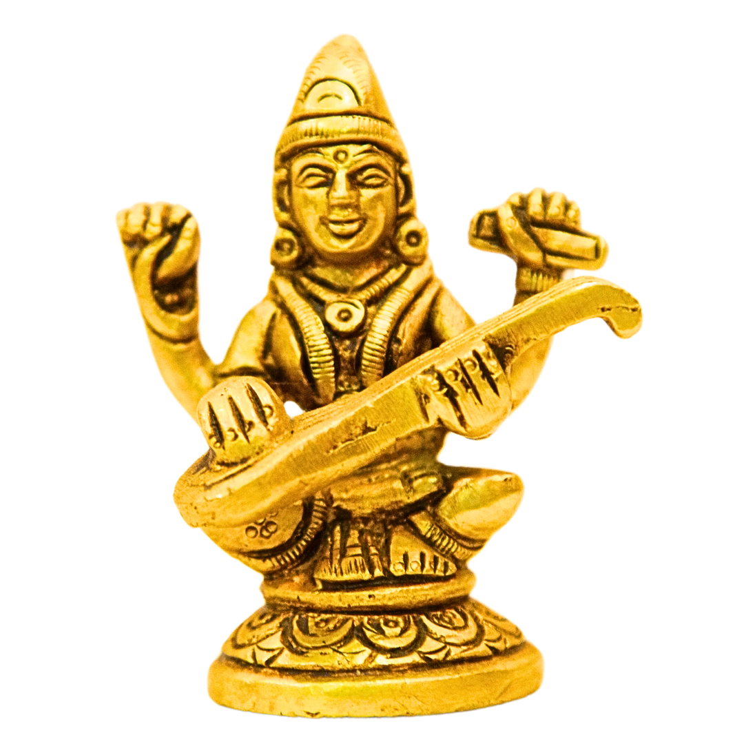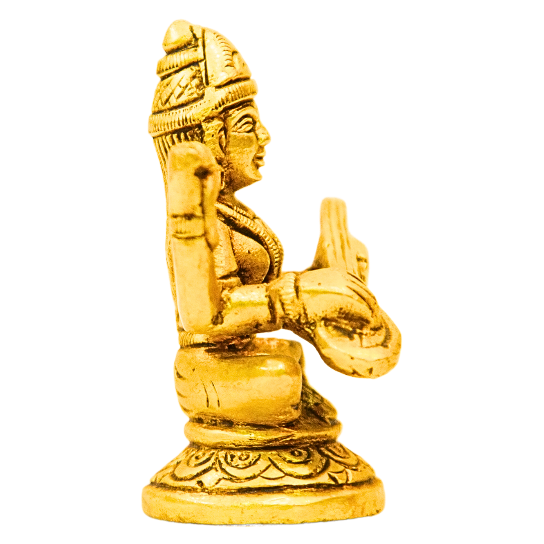 Bring divine grace and wisdom into your home with this intricately crafted 3-inch Brass Saraswati Sitting Statue. Saraswati, the Hindu Goddess of knowledge, music, and arts, is beautifully depicted in this miniature statue, which exudes elegance and spiritual serenity. Handcrafted from high-quality brass, this statue serves as a powerful symbol of wisdom, creativity, and learning.