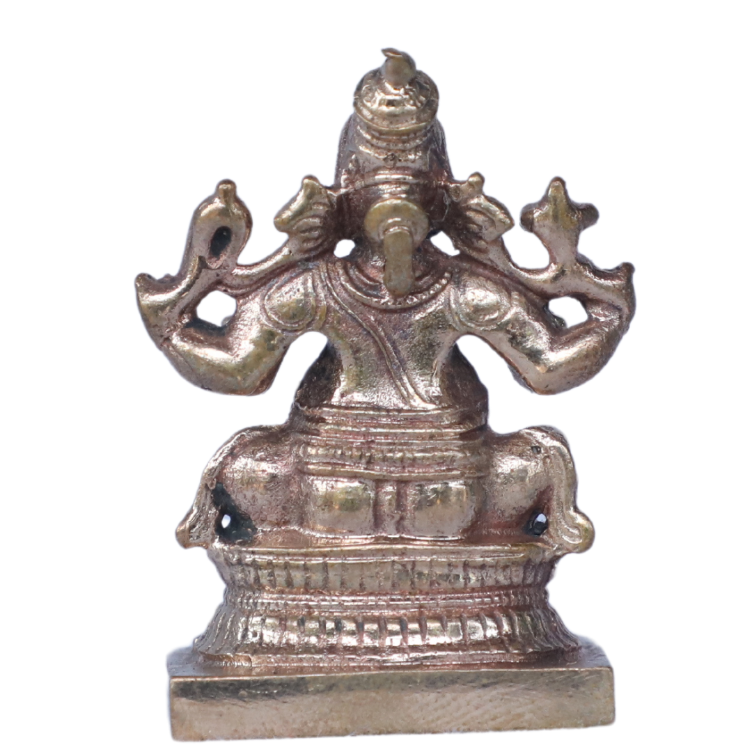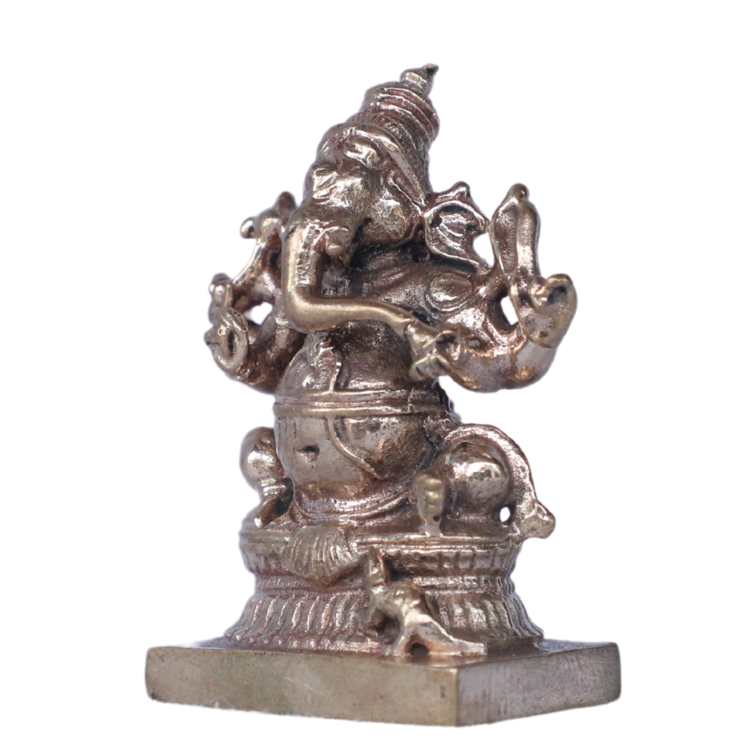 This 1.5-inch Bronze Vinayagar (Lord Ganesha) idol is a perfect representation of Lord Ganesha’s divine energy in a compact, intricately designed form. Made from high-quality bronze, this miniature statue captures the essence of the beloved remover of obstacles, bestower of wisdom, and bringer of prosperity. It is ideal for small spaces, personal altars, or as a thoughtful gift for spiritual occasions.