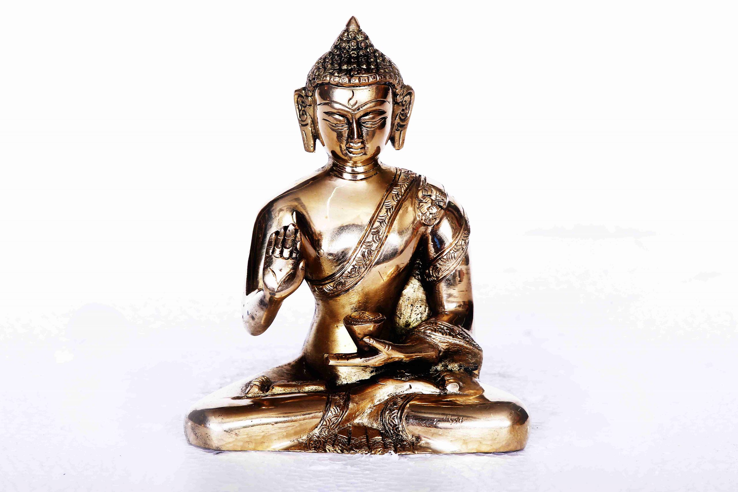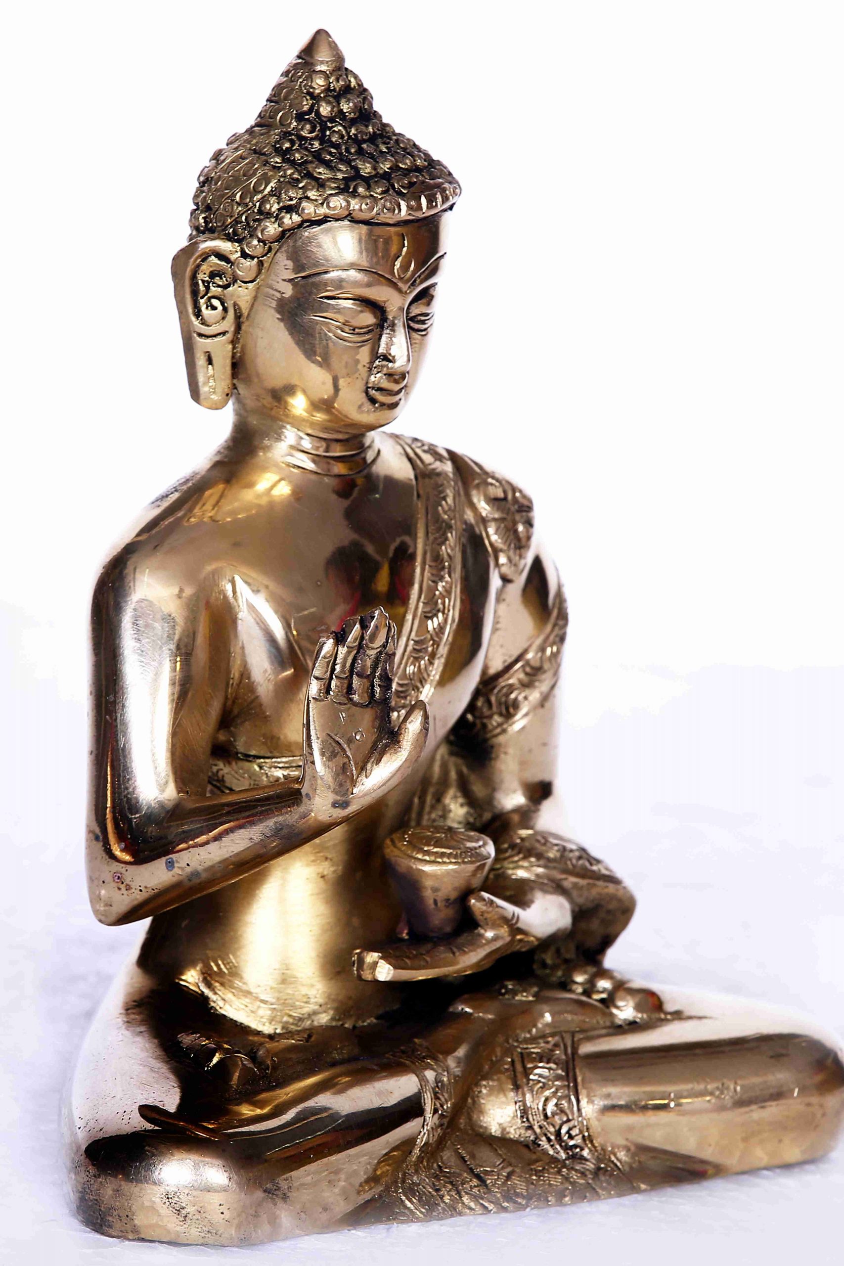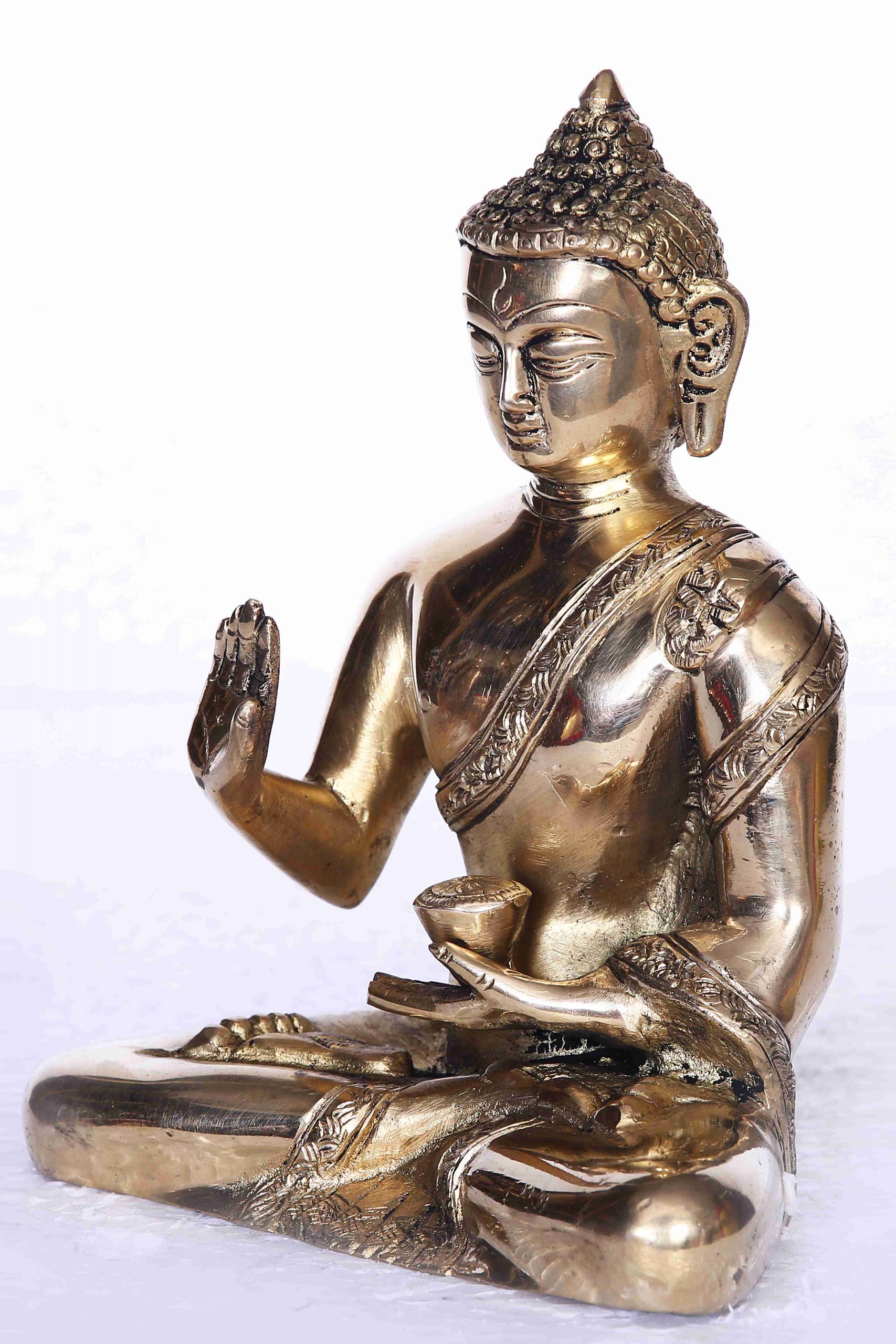 Brass Buddha Idol | Handcrafted Decorative Statue | Meditation & Home Decor | 8-Inch Solid Brass | Antique Finish