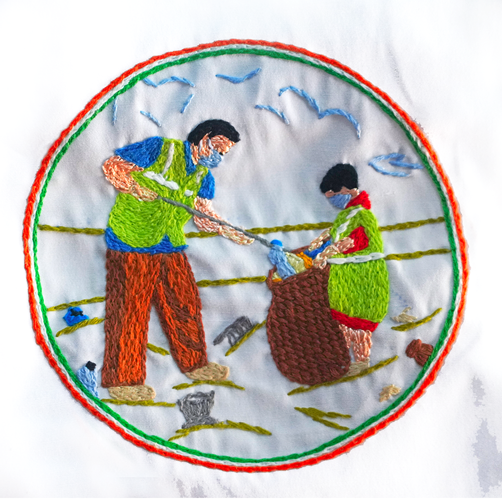 - Design: Features a cleaning stamp motif, carefully crafted with chain stitching to convey a message of hygiene and cleanliness