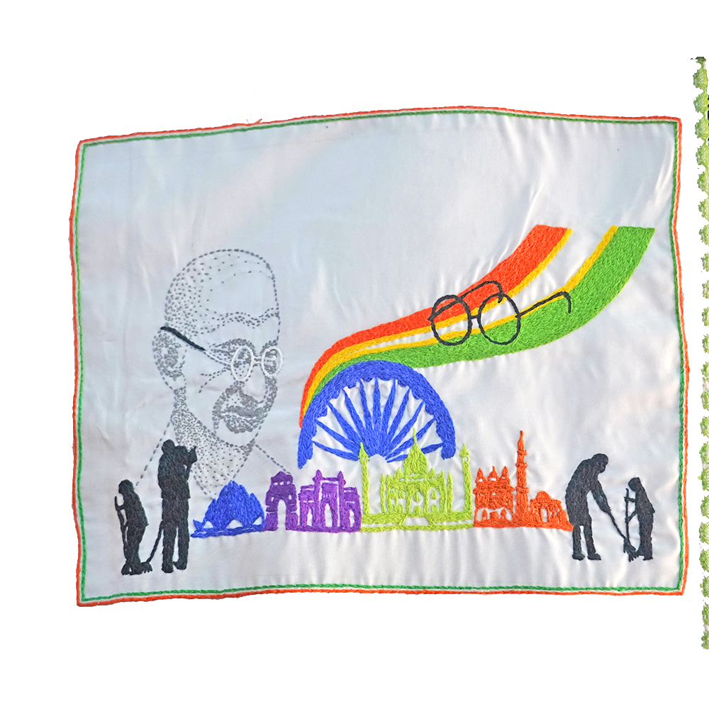 - Design: Features the Swachh Bharat Abhiyan logo, crafted with fine chain stitching to represent cleanliness, hygiene, and national pride
