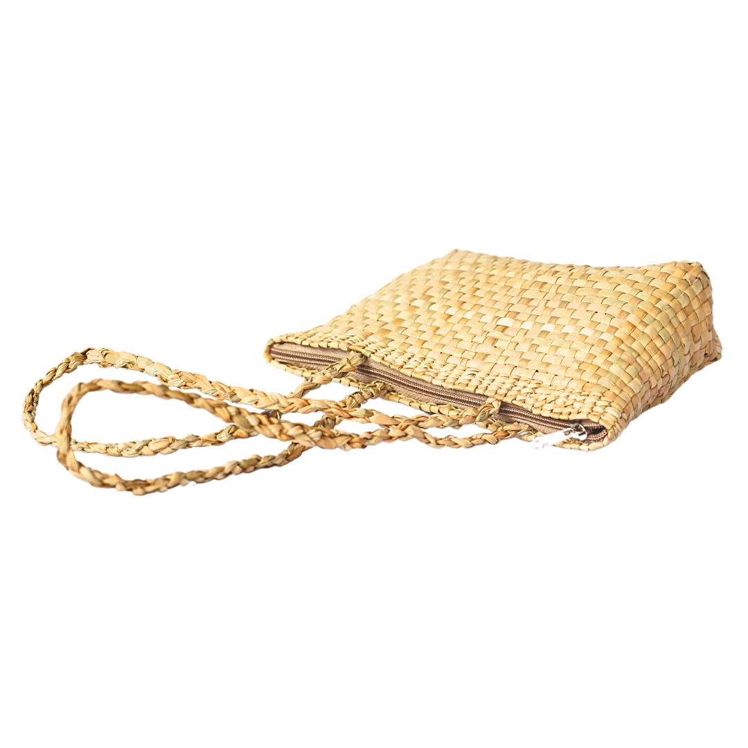 - Design: The handbag features an elegant woven pattern that highlights the natural beauty of the champa grass. It has a sturdy handle for easy carrying, and its versatile design complements a variety of outfits, from casual wear to beach attire