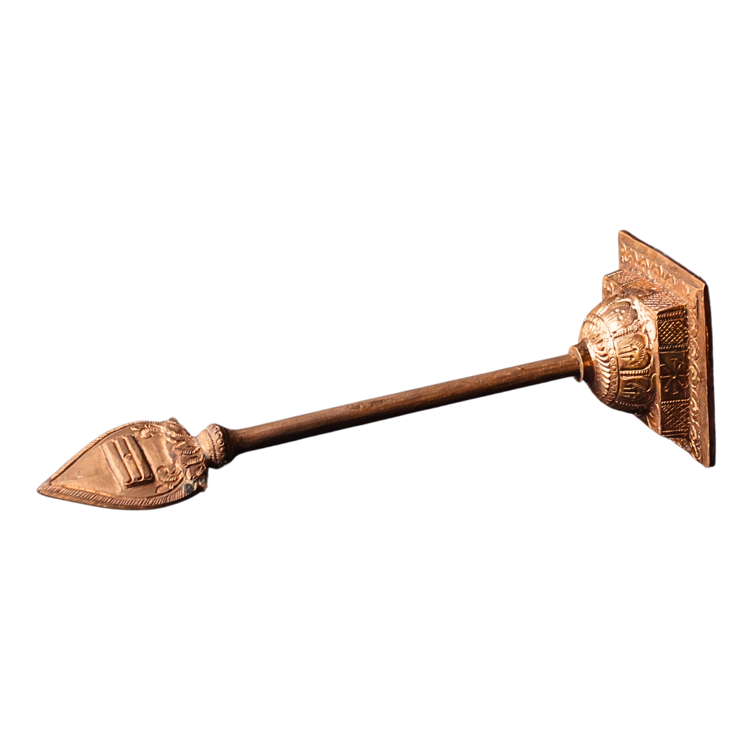 - Intricate Craftsmanship: The Copper Vel is meticulously crafted with fine detailing, showcasing the elegance and sacred nature of this divine weapon. Its pointed tip and long, slender shaft are beautifully etched, reflecting its significance in Hindu mythology.