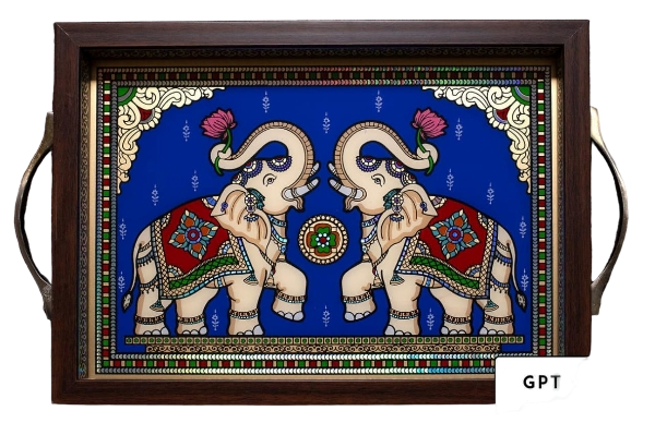 Add a touch of heritage to your home with this unique Glass Painting Elephant Tray, available exclusively at Poompuhar!