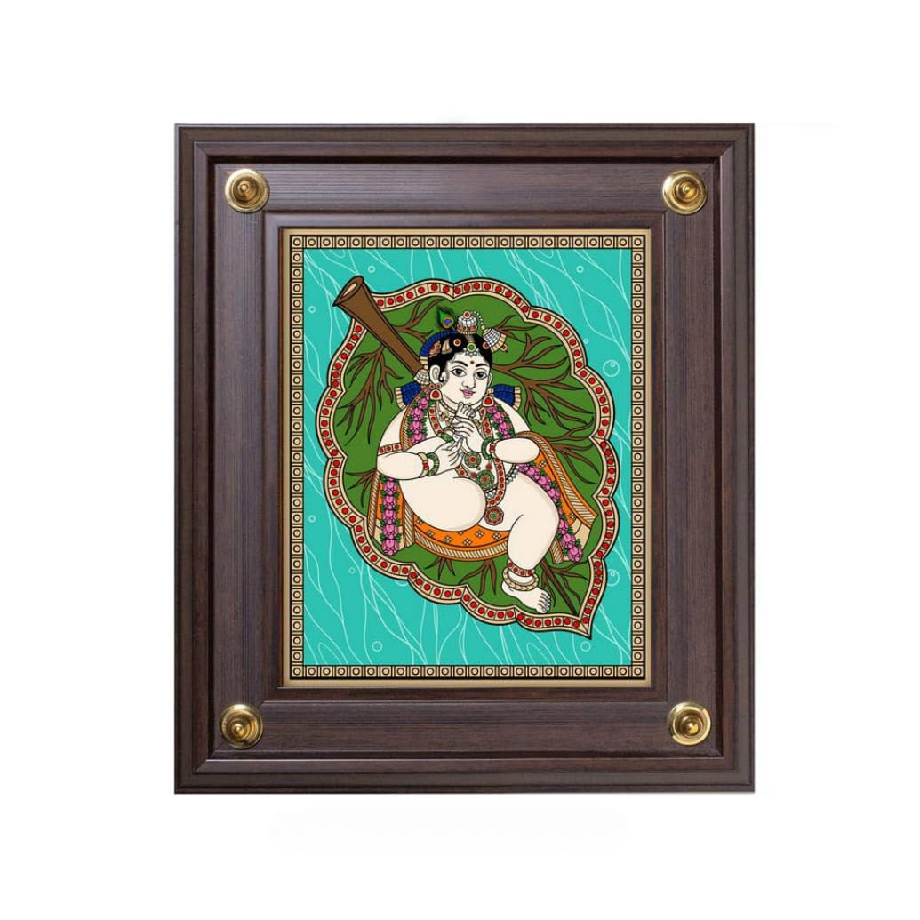 Glass Paintings – Leaf Krishna | Handcrafted Traditional Art | Framed Wall Décor for Home & Gifting
