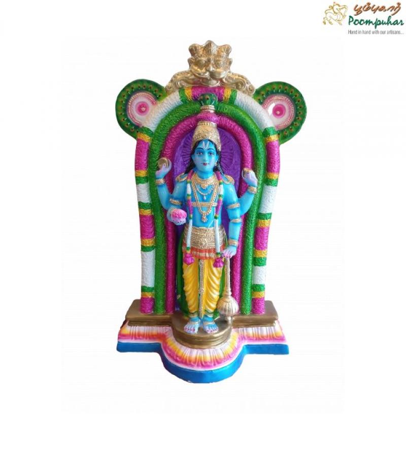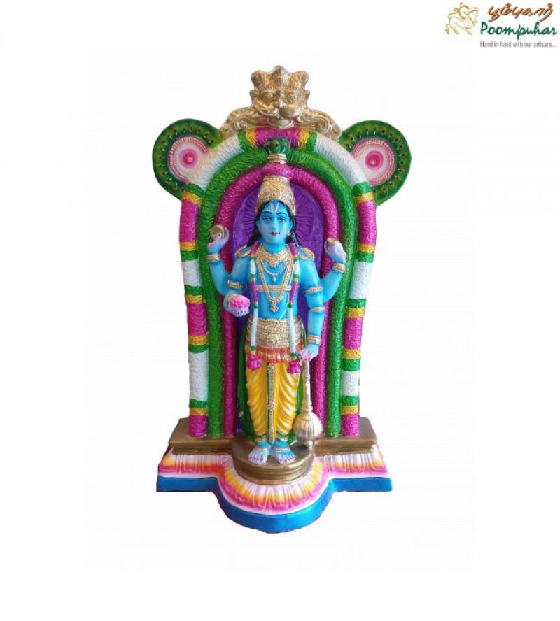 - Color: The figurine features a vibrant color palette, incorporating rich shades of gold, blue, and green that reflect the divine nature of Lord Guruvayurappa. The carefully chosen colors enhance the visual appeal, creating an eye-catching display.